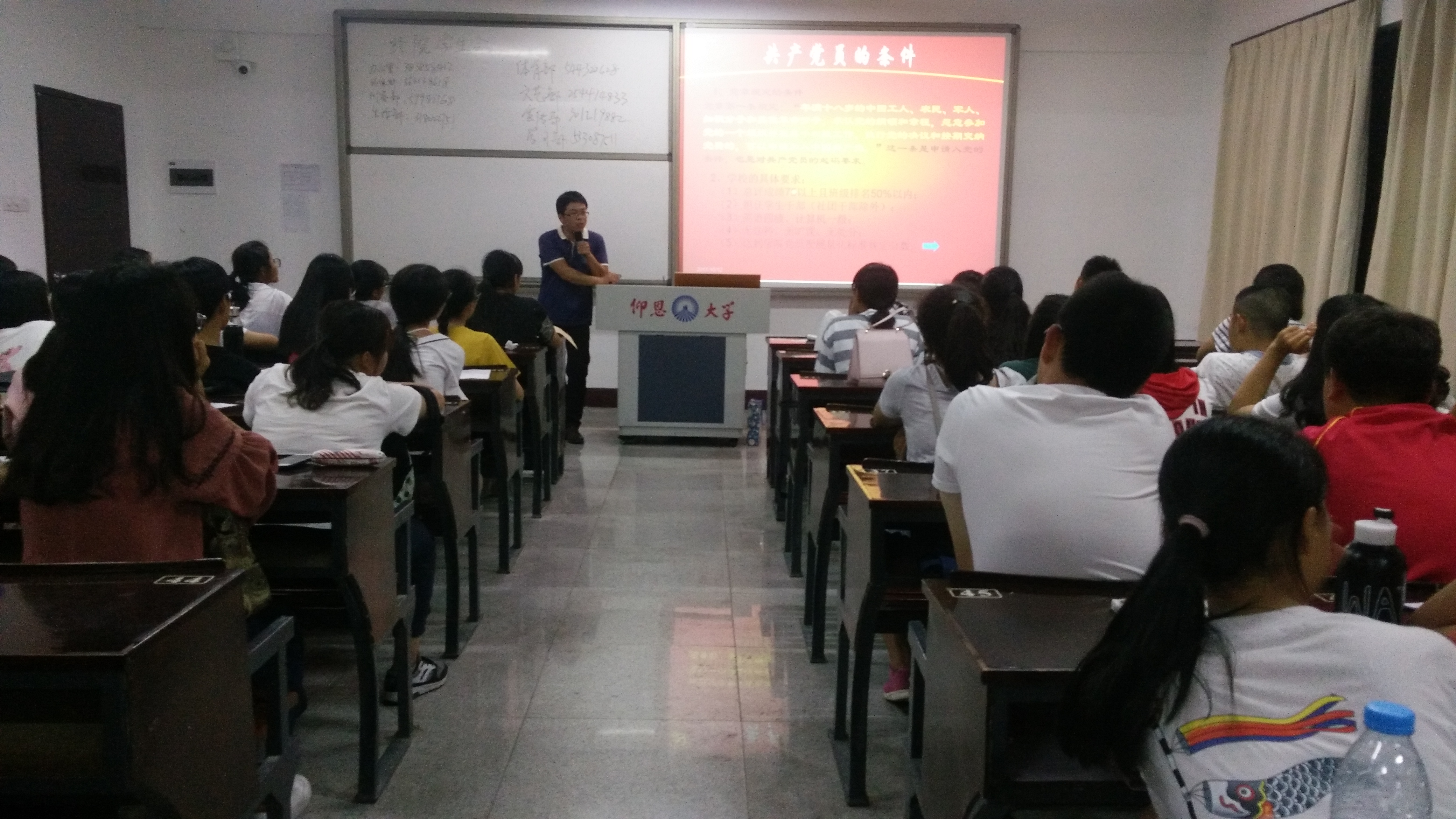 为加强学生对入党程序和党建知识的了解,引导广大新生积极加入党组织。买球官方网站党总支于10月12日晚举行新生入学党性教育会。本次会议由买球官方网站党总支副书记林丽华、买球官方网站党总支组织委员刘志华主讲。