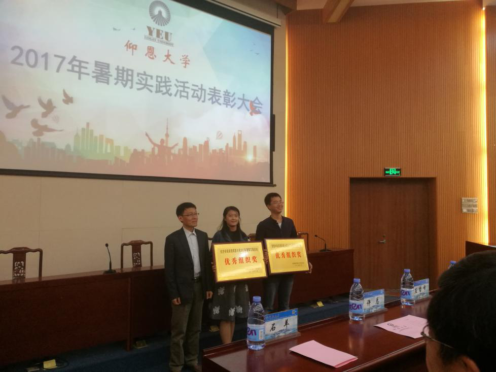 随后,曹流宣读了《关于表彰买球官方网站2017年暑期实践活动先进集体和个人的决定》。校领导分别为获表彰的集体和个人颁奖。其中,我院共有3支队伍获校级优秀团队奖,31名实践队员获校级先进个人奖,指导老师刘志华获得“优秀指导老师”称号,同时,我院还一举斩获“优秀组织奖”。