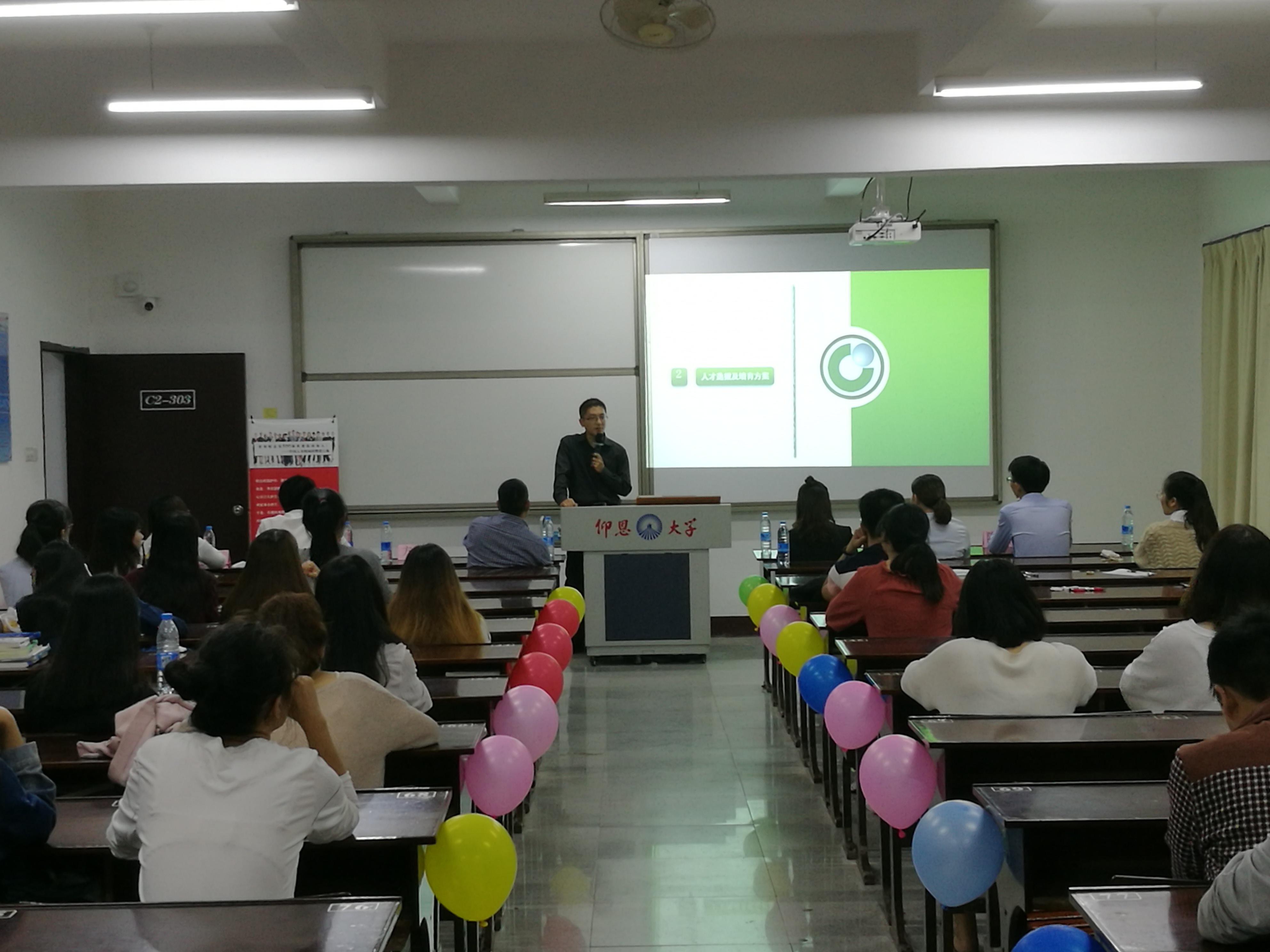 会上,讲师林菁就中国人寿保险公司的公司概况和企业文化向同学进行介绍,讲师方啸与同学们分享了择业的重要性与方法,同学们认真听讲,现场气氛活跃。通过了解,不少同学现场应聘求职,宣讲效果明显。