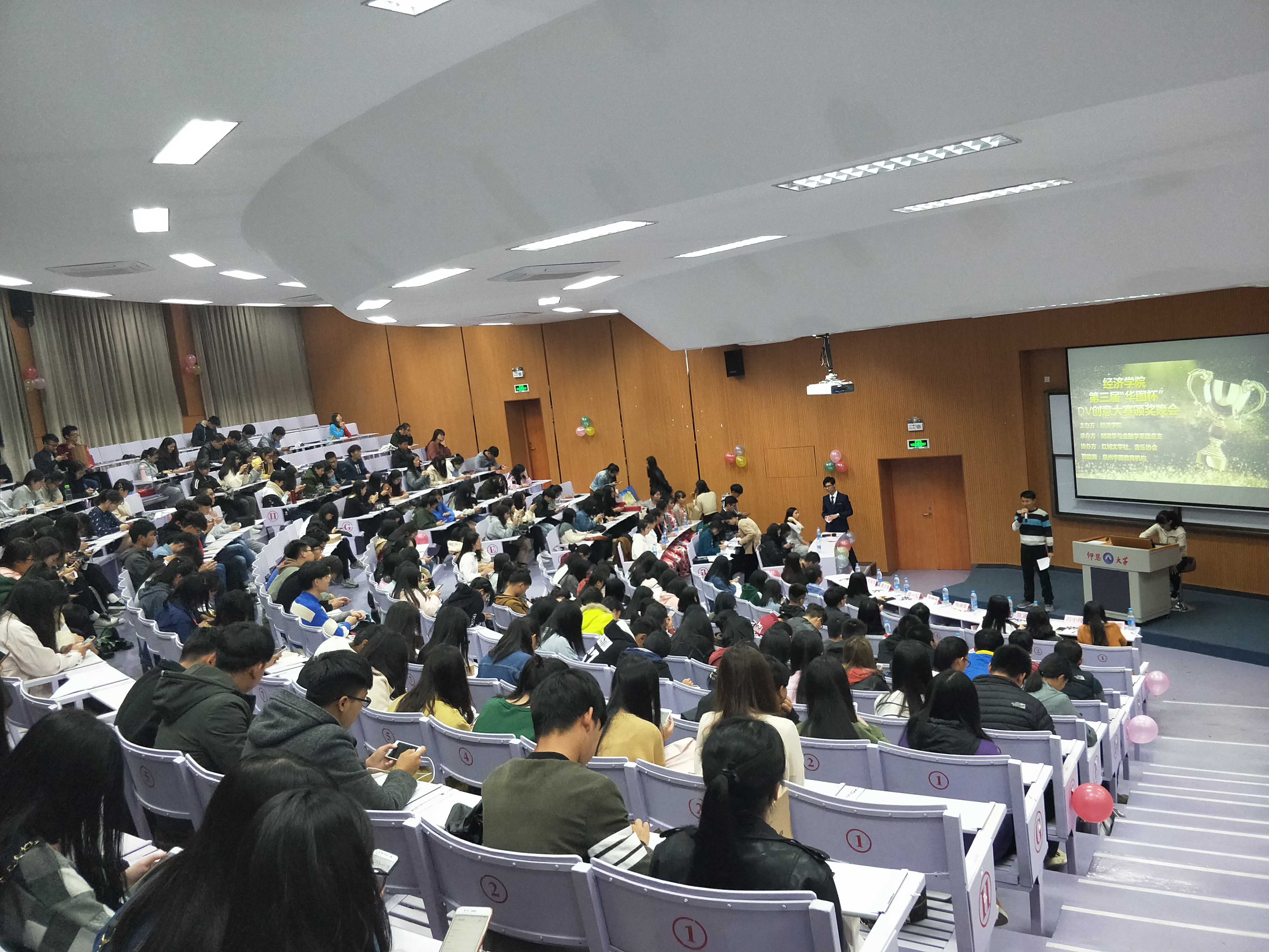 1126日晚7点,由买球官方网站主办、财政学与金融学系团总支承办、红城文学社及音乐协会协办的买球官方网站第三届“华图杯”大学生DV创意大赛颁奖晚会在和昌楼博雅讲堂圆满举行。买球官方网站团委书记陈建鑫、学生会指导老师林珊珊、财金系团总支书记赖桂全、团委干部及全体团总支副书记出席现场,特邀嘉宾泉州华图教育机构咨询师康汉景老师作现场点评。