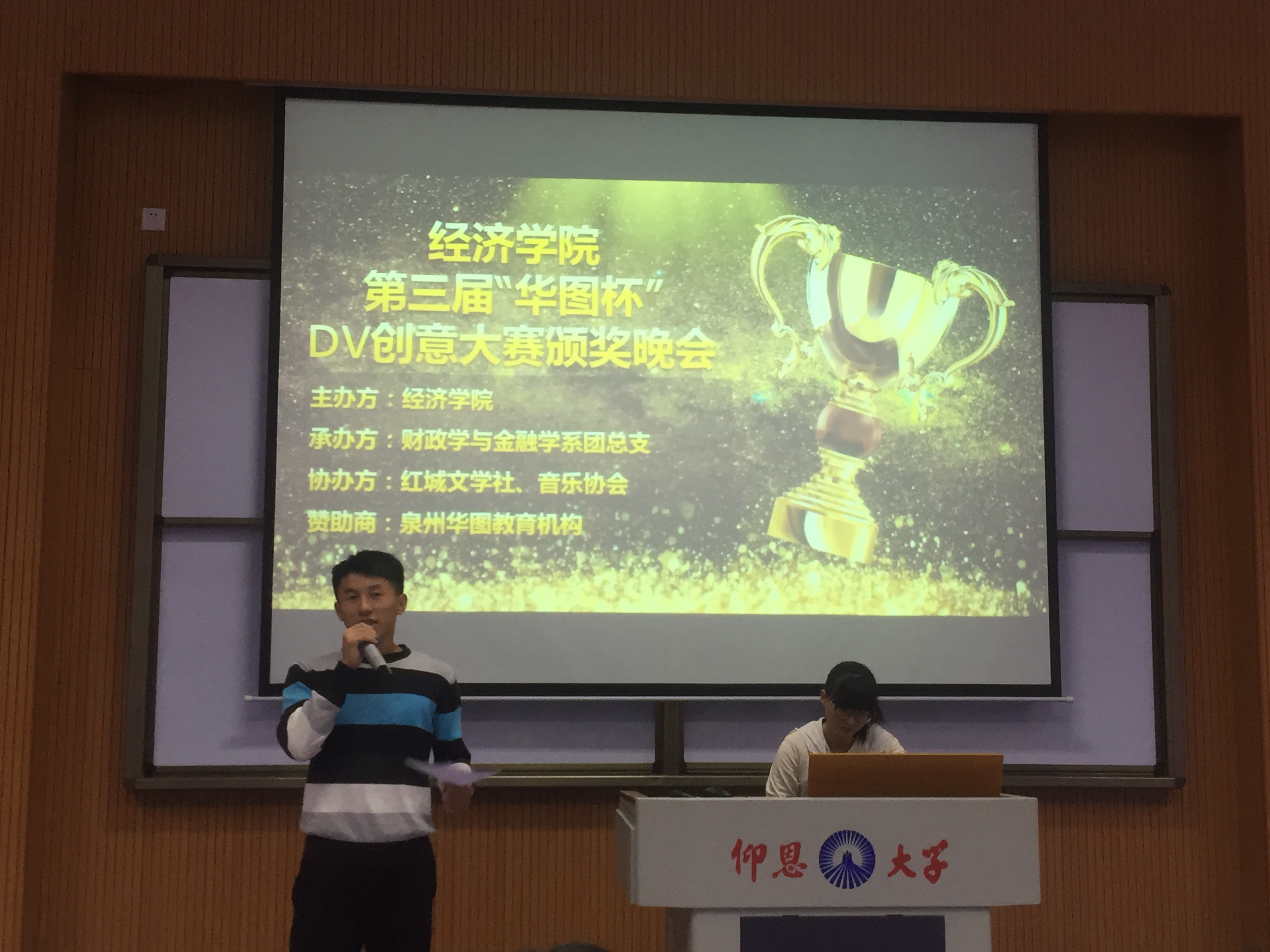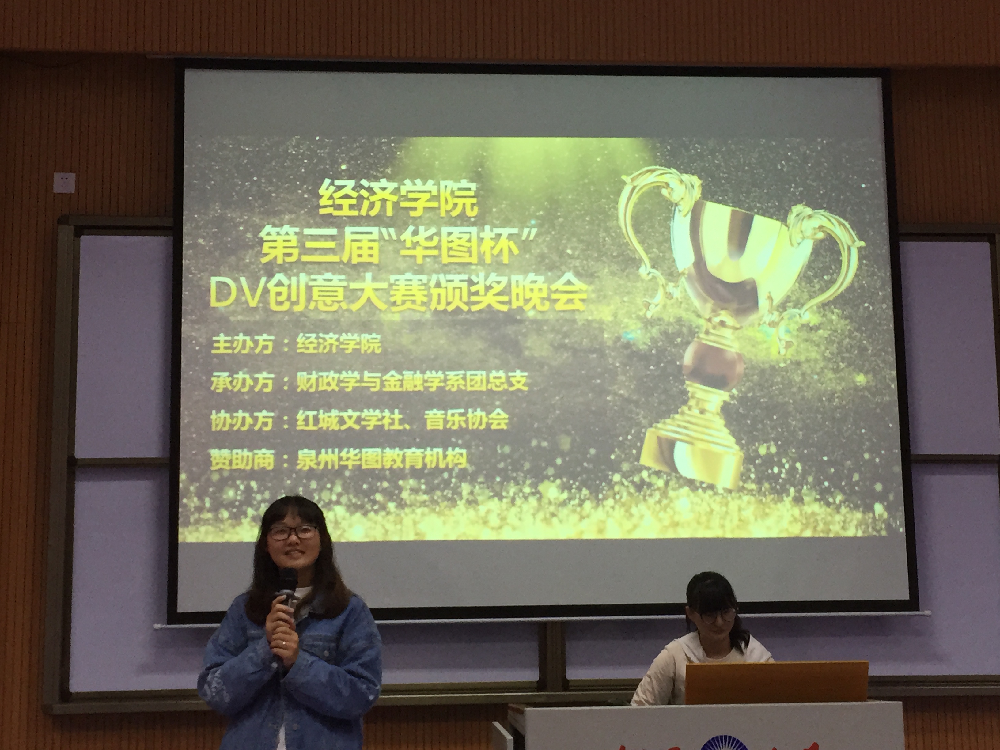 11月26日晚7点,由买球官方网站主办、财政学与金融学系团总支承办、红城文学社及音乐协会协办的买球官方网站第三届“华图杯”大学生DV创意大赛颁奖晚会在和昌楼博雅讲堂圆满举行。买球官方网站团委书记陈建鑫、学生会指导老师林珊珊、财金系团总支书记赖桂全、团委干部及全体团总支副书记出席现场,特邀嘉宾泉州华图教育机构咨询师康汉景老师作现场点评。