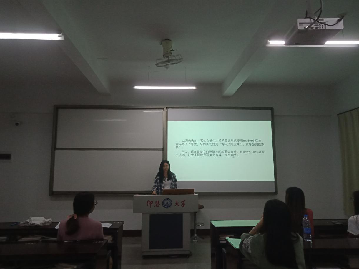 (图为160103班级班委代表进行学习分享发言)