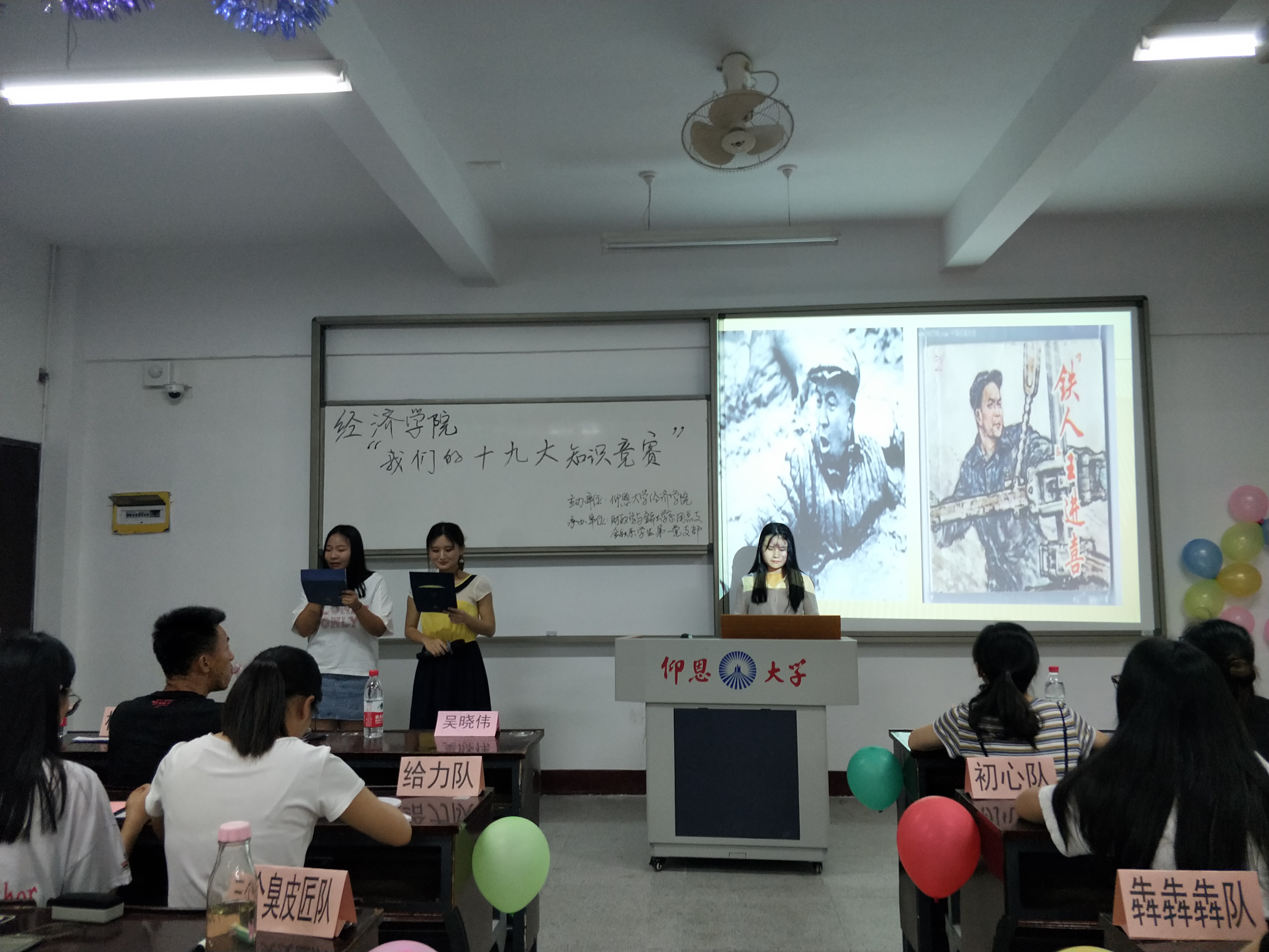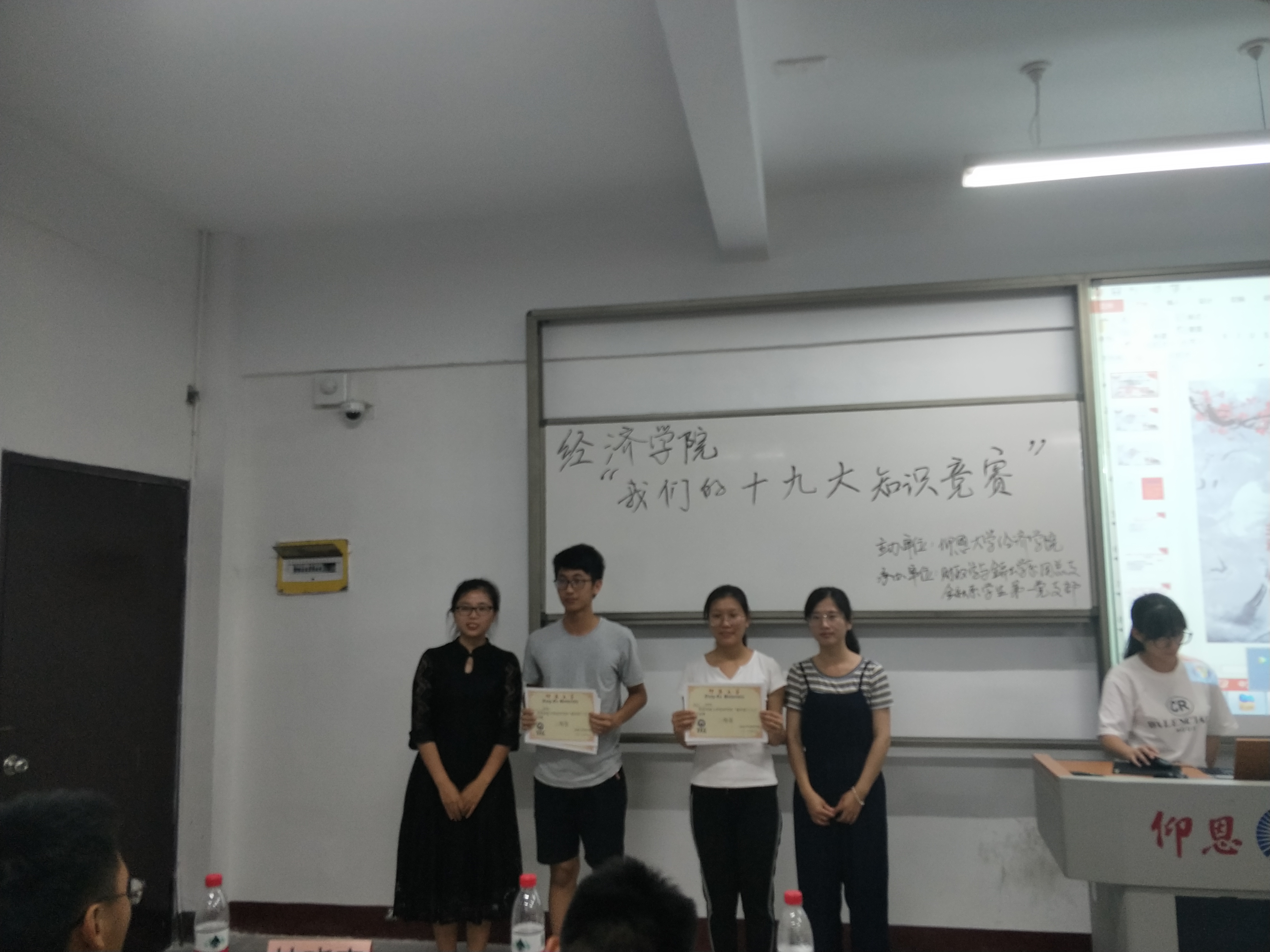 6月4日晚19时,由买球官方网站主办,财政学与金融学系团总支以及金融系学生第一党支部共同承办的“我们的十九大”知识竞赛活动于仰恩楼B1-207室举行。买球官方网站学生会指导老师林珊珊、党总支组织委员兼金融系学生第一党支部书记何丽玲、团委书记陈建鑫、财政学与金融学系团总支书记赖桂全、经贸系学生第一党支部书记林晓富出席了此次知识竞赛活动。金融系全体支部成员参与。
