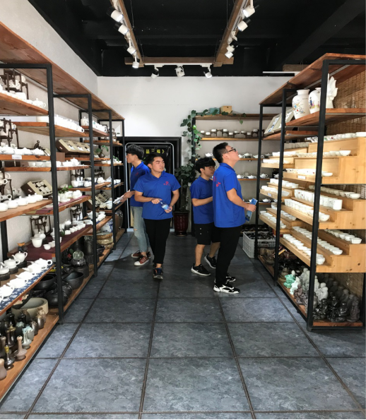 上午,实践队一行人参观了极富“瓷香”特色的陶瓷街,据当地人介绍陶瓷街是德化的窗口形象。随后,实践队陶瓷博物馆博物馆一楼三个展厅有固定陈列《德化陶瓷史话》,该陈列以历史发展为主线,比较系统地表现德化县古今瓷器的发展面貌和伟大成就,分为“水土宜瓷、千年窑烟”、“宋元瓷器、崭露头角”、“明代白瓷、独树一帜”、“清代青花、诗情画意”、“海丝瓷路、蜚声宇内”、“民国瓷器、承袭传统”、“瓷国明珠、百花齐放”等七个单元,展览充分展示了德化陶瓷生产工艺艺术特色、贸易状况及其人文内涵,此次参观使实践队员们充分了解德化窑的历史地位和作用同时也领略到了瓷都人民勤劳智慧和开拓创新精神。