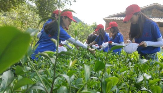 (图为实践队员采摘茶叶)