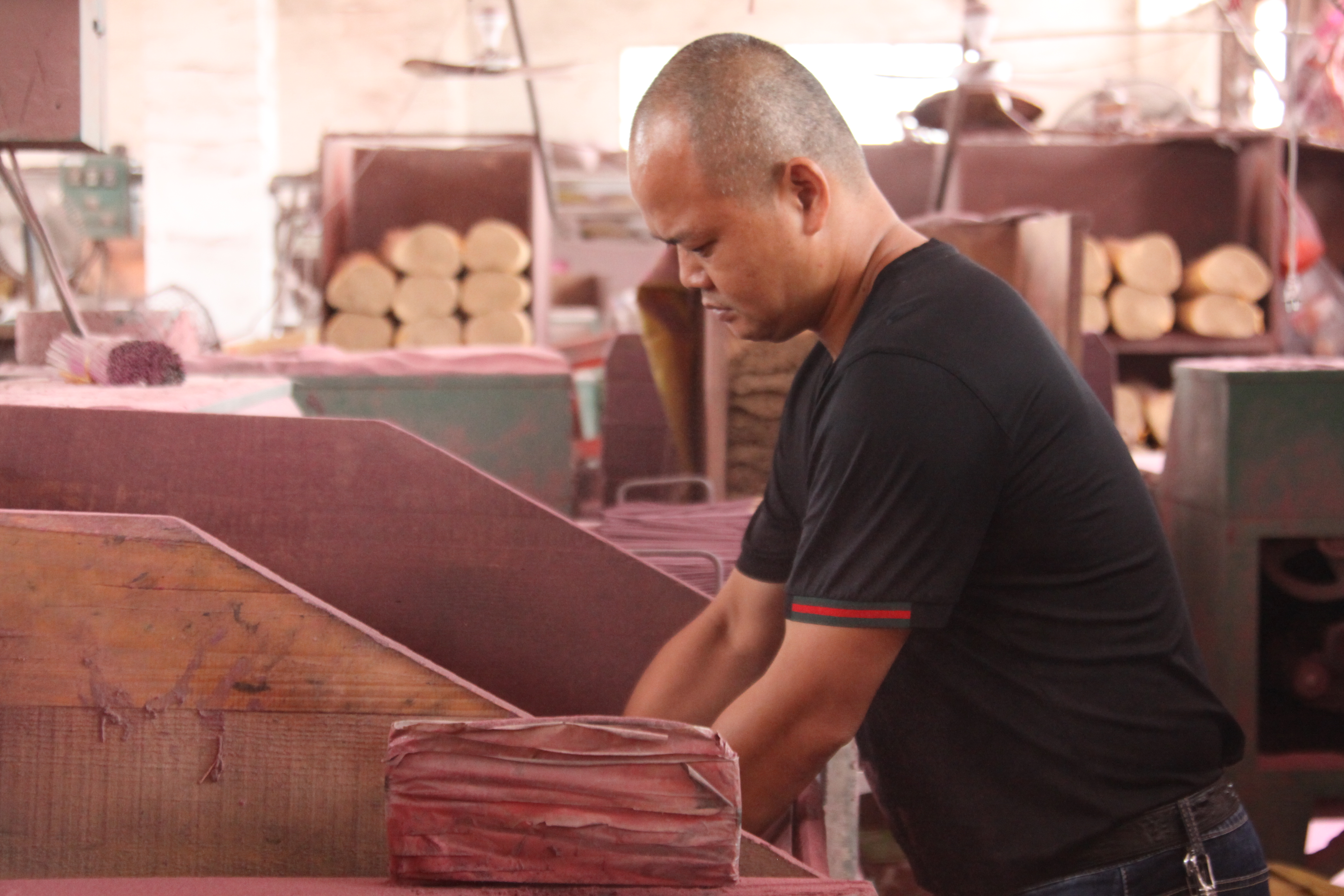 福建百轩香业有限公司坐落于“中国香都”——永春县达埔镇,公司创建于1977年,是一家管理规范、设备先进、技术创新的制香品生产基地。百轩香业以“诚信、务实”为准则,坚持以用户需求为核心,同时依托现代先进工艺。在访谈过程中,林金泽经理提到该公司在2012年开始转型,产品由单一化向多元化转变,生产模式从传统手工到手工和机械的结合。产品从最开始的朝拜香到现在的卫生香、无烟香、养生香等多系列品种;从最开始的传统手搓香到机械化搓香粉;经营模式从自产自销到线上销售。