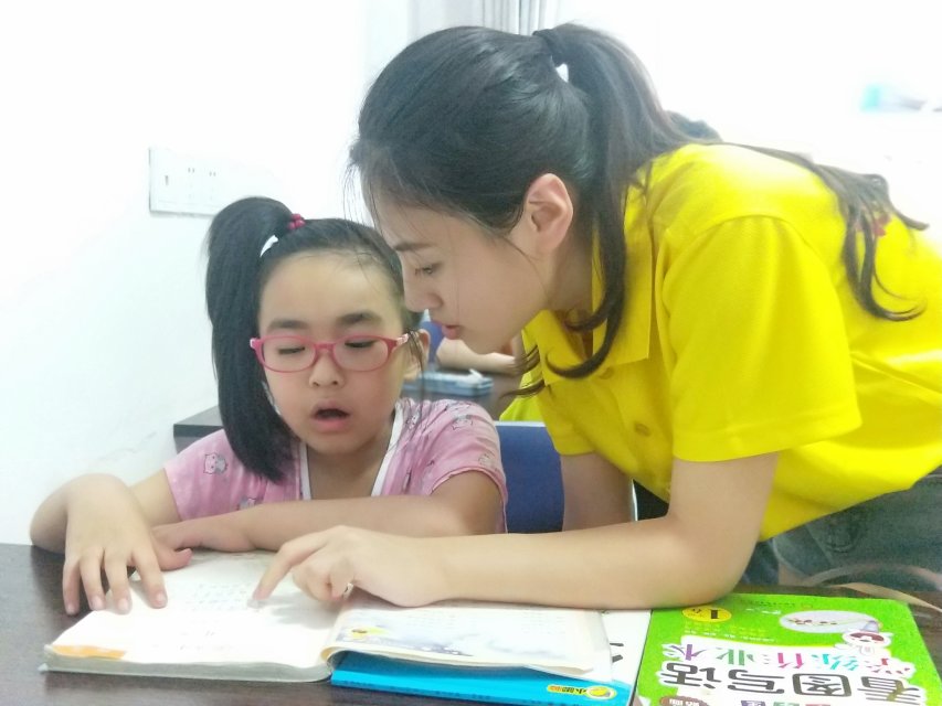 图为实践队队员教孩子读书识字