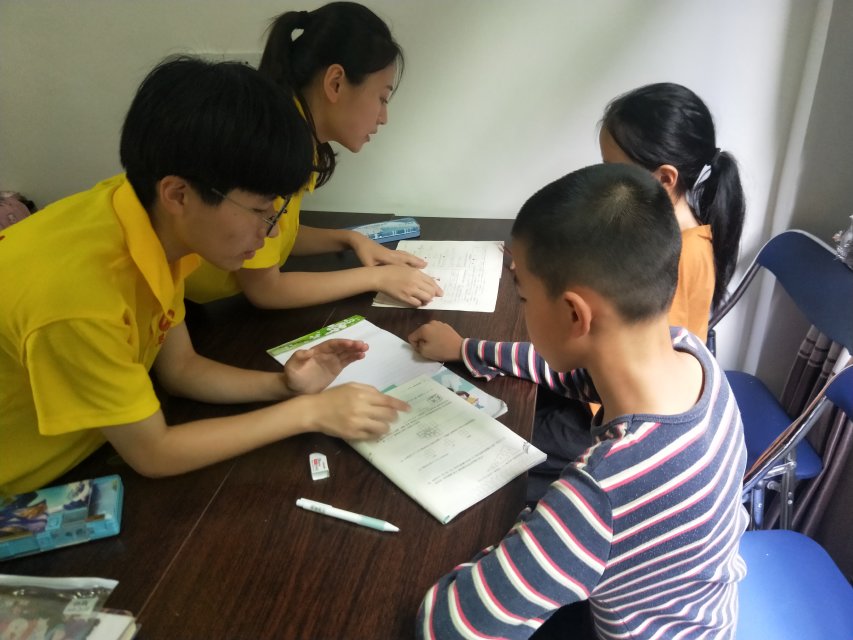 (图为实践队队员为孩子们辅导作业)