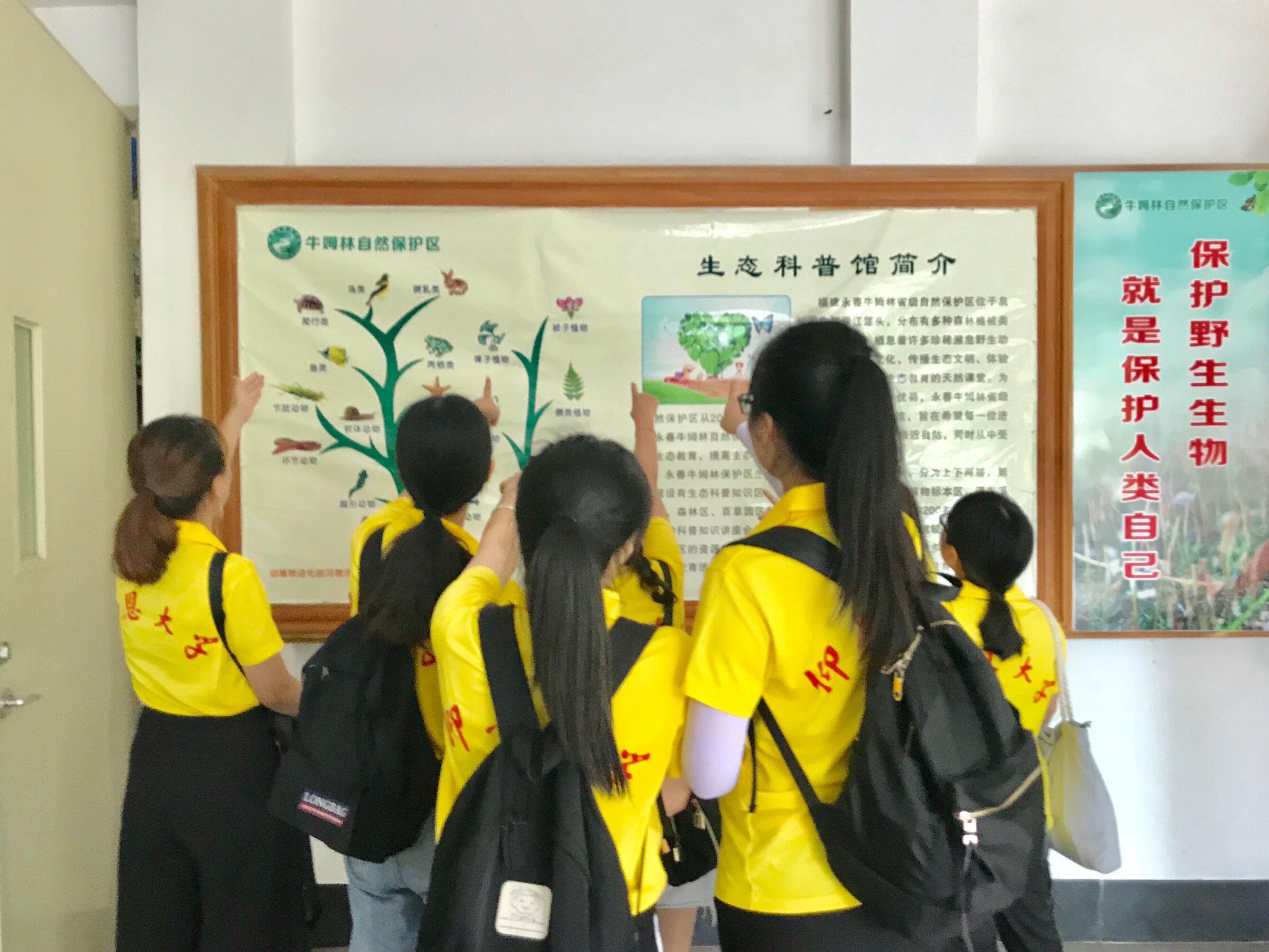 (图为指导老师和队员们参观生态科普馆现场)