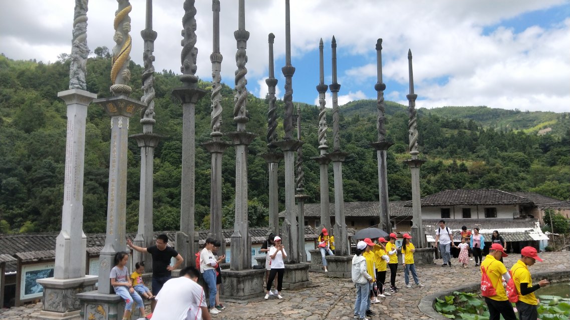 实践队发现村里坐落着一座国家重点文物----德远堂,此乃塔下村张氏祖祠。实践队观察到祠堂内雕梁画栋,古朴典雅,十分讲究,简直是一条画廊。祠堂后有一口池塘,池塘边上有清朝以来张氏及第的进士、举人、贡生等有学衔官阶的子孙所立的石龙旗杆23支,可见塔下村是人才辈出。