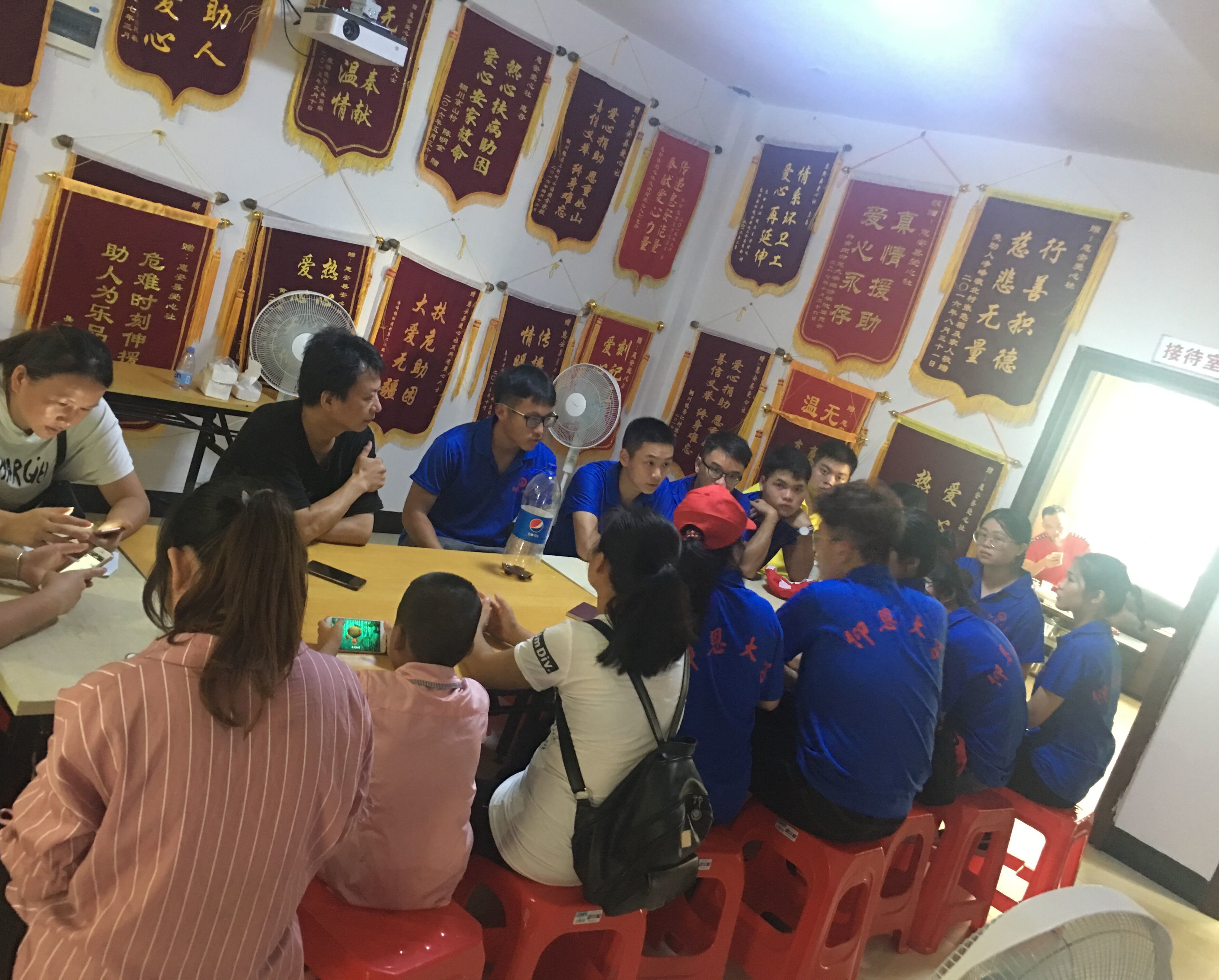 (图为实践队员与惠安爱心社社长讨论活动)