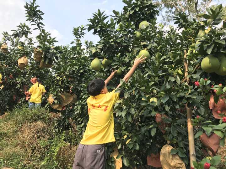 (图为队员正在观察蜜柚)