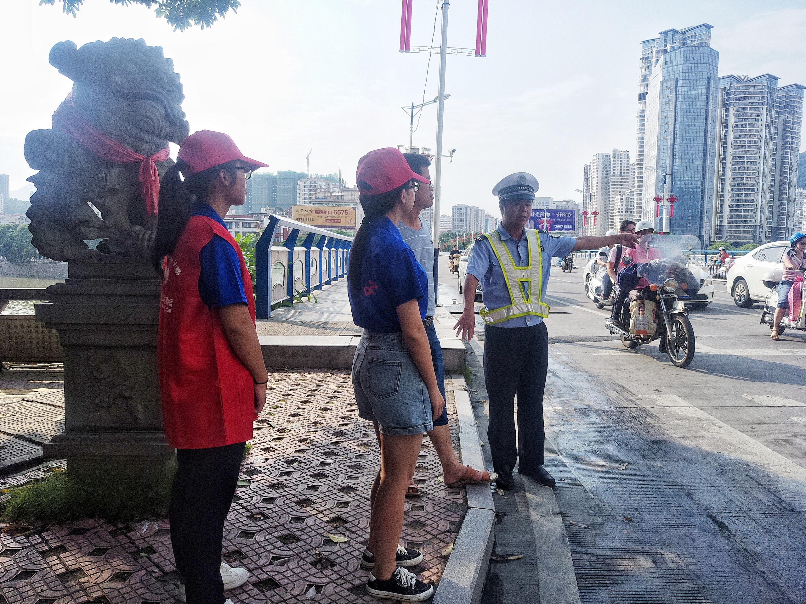 7月22日,为倡导安溪县文明交通的出行新风尚,推进学雷锋志愿服务的深入开展,买球官方网站赴安溪暑期社会实践队与安溪县交警大队、安溪县茜茜公益组织合作,在大同路和解放路交叉路口,积极开展了文明交通引导志愿服务活动。