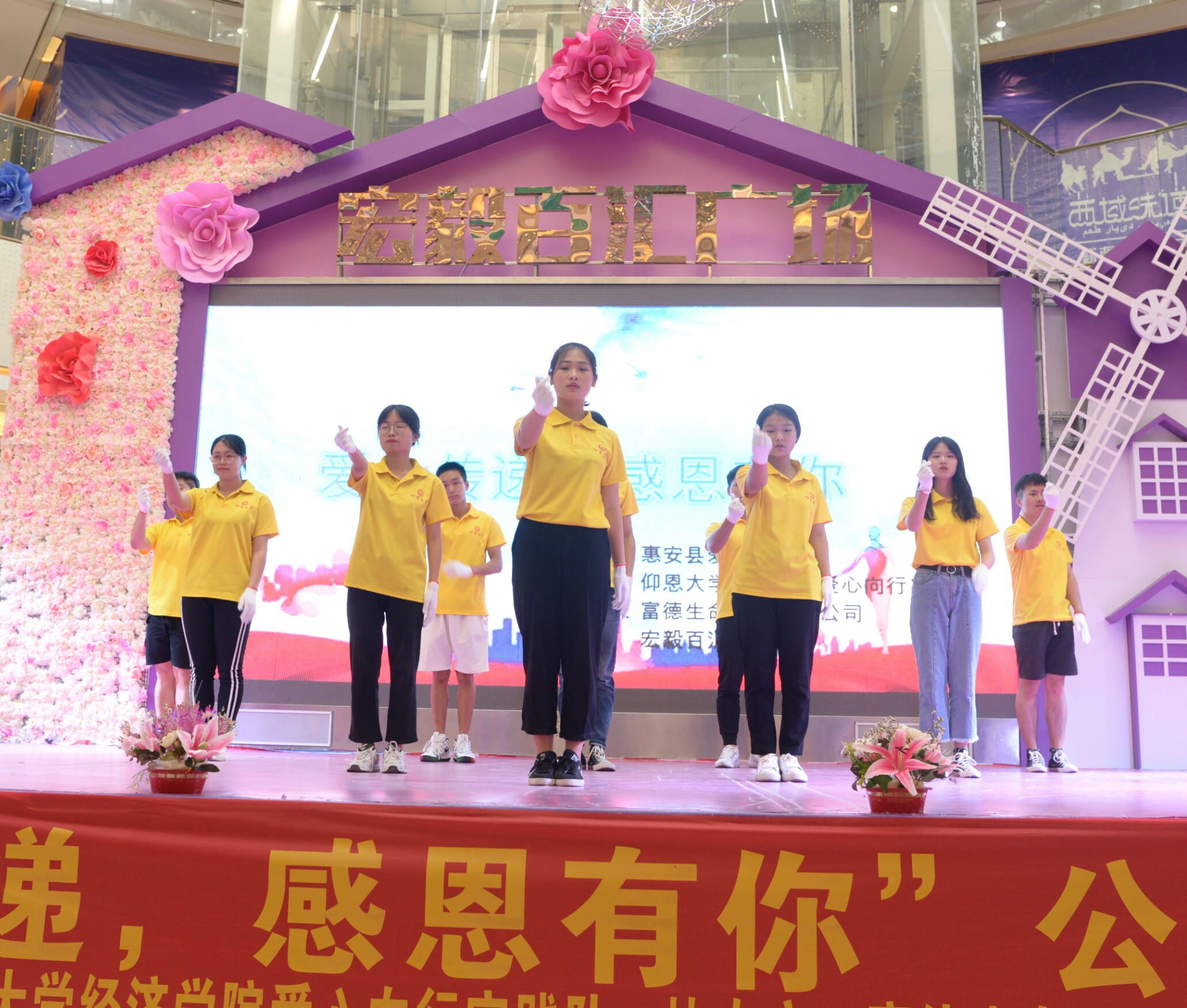 7月28日,由惠安县爱心社与买球官方网站爱心向行实践队主办,富德生命人寿保险公司和宏毅百汇商场协办“爱心传递 感恩有你”主题公益晚会于宏毅百汇广场1楼举行。