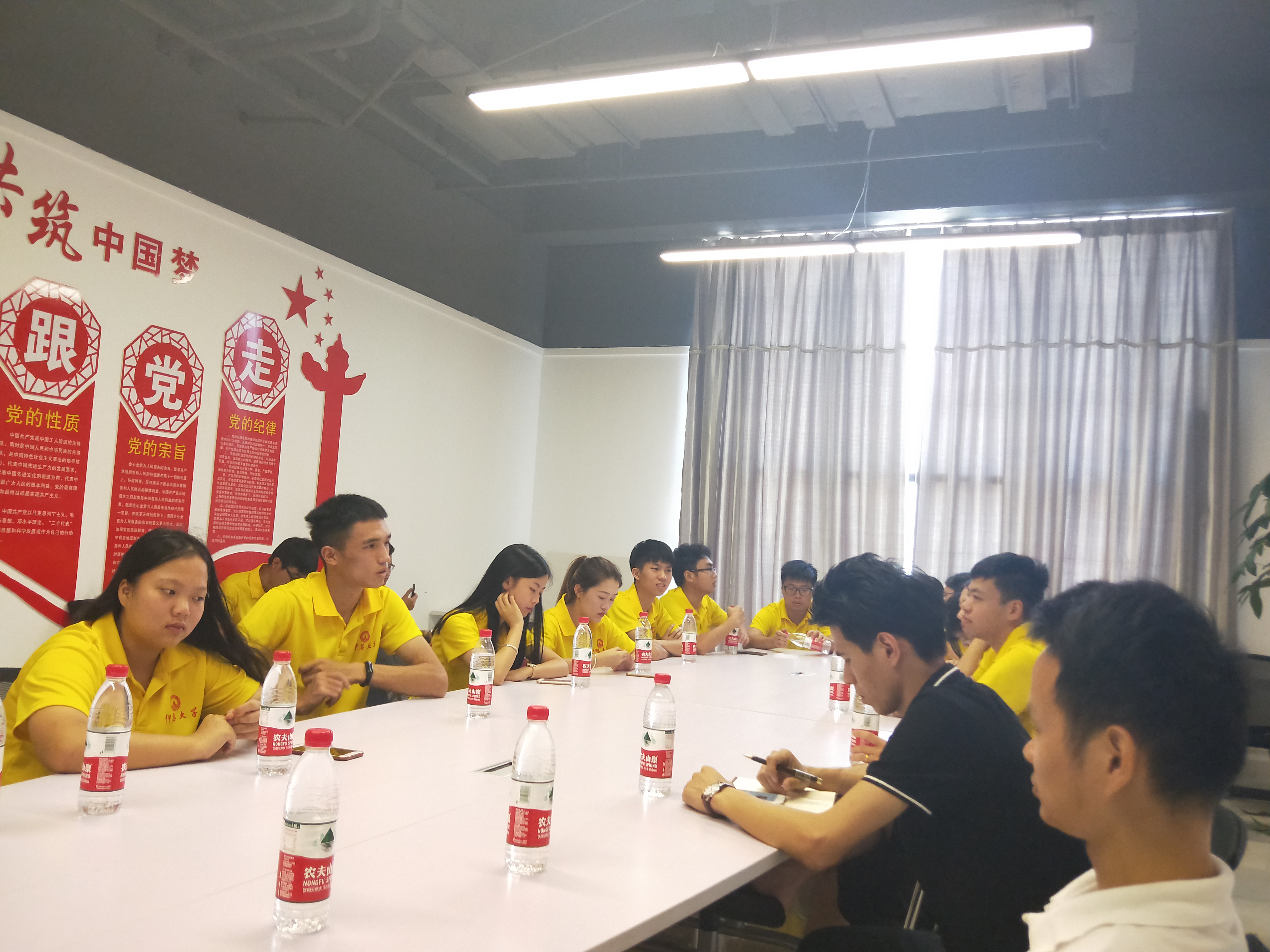 (图为实践队队员与创业园会长雷强、常务副会长郑敏进行交流)