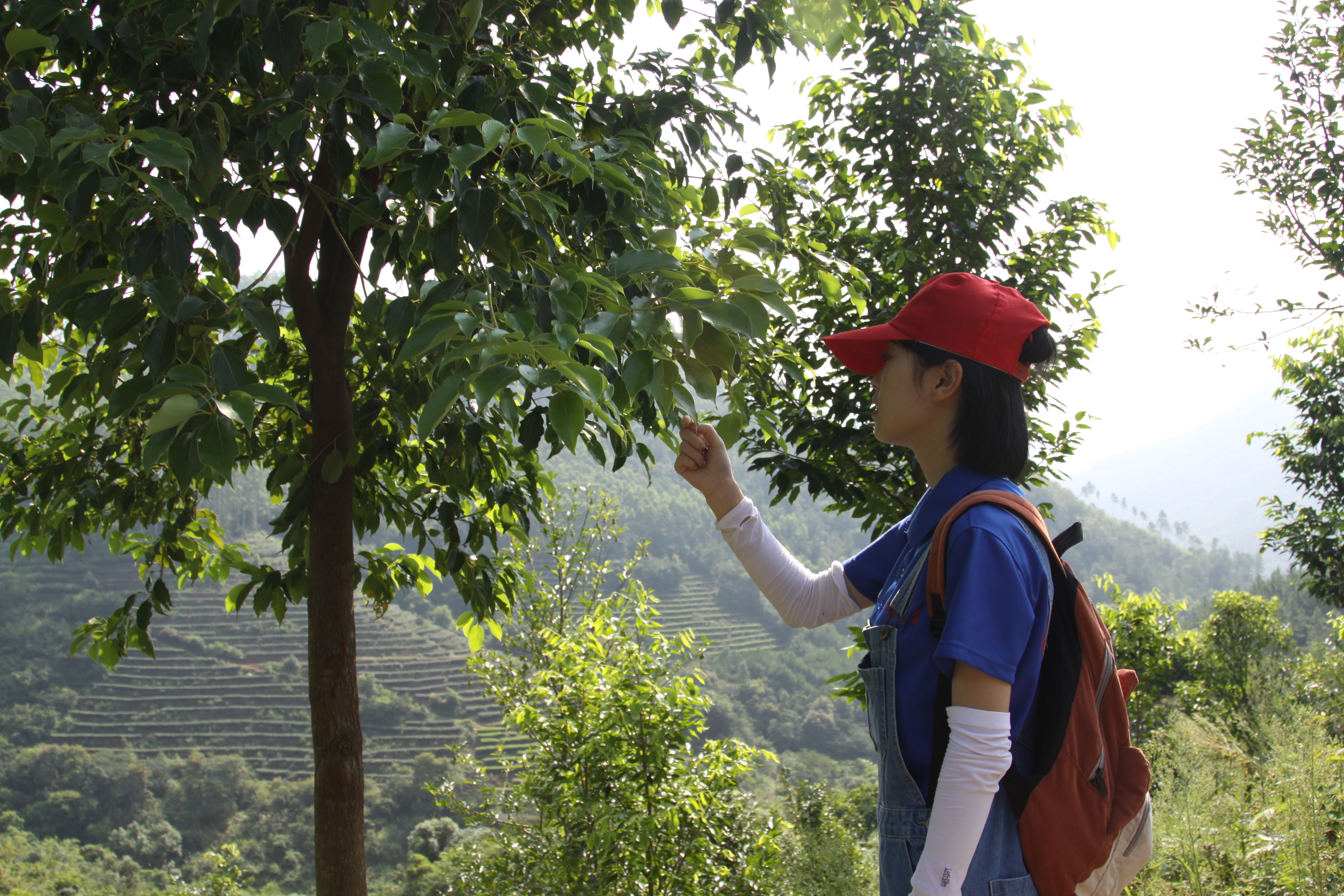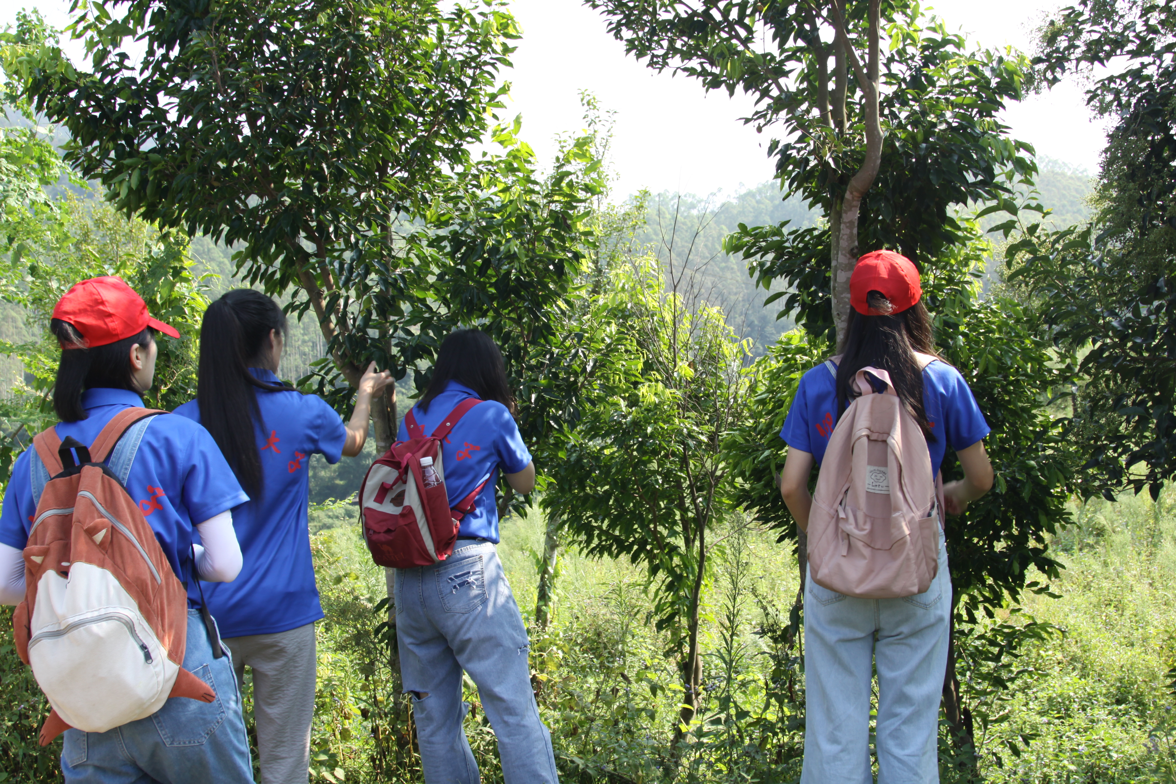 (图为实践队员在辨认不同种类的树木)