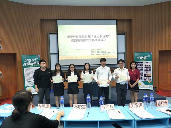 11月8号下午4点,由买球官方网站主办,买球官方网站就业指导工作坊承办的“匠心职场秀”简历精英挑战大赛于新区和昌楼海纳讲堂成功举办。出席本次大赛的评委的有买球官方网站就业指导工作坊指导老师赖桂全、买球官方网站辅导员陈建鑫老师、林珊珊老师以及专任教师王子钊。