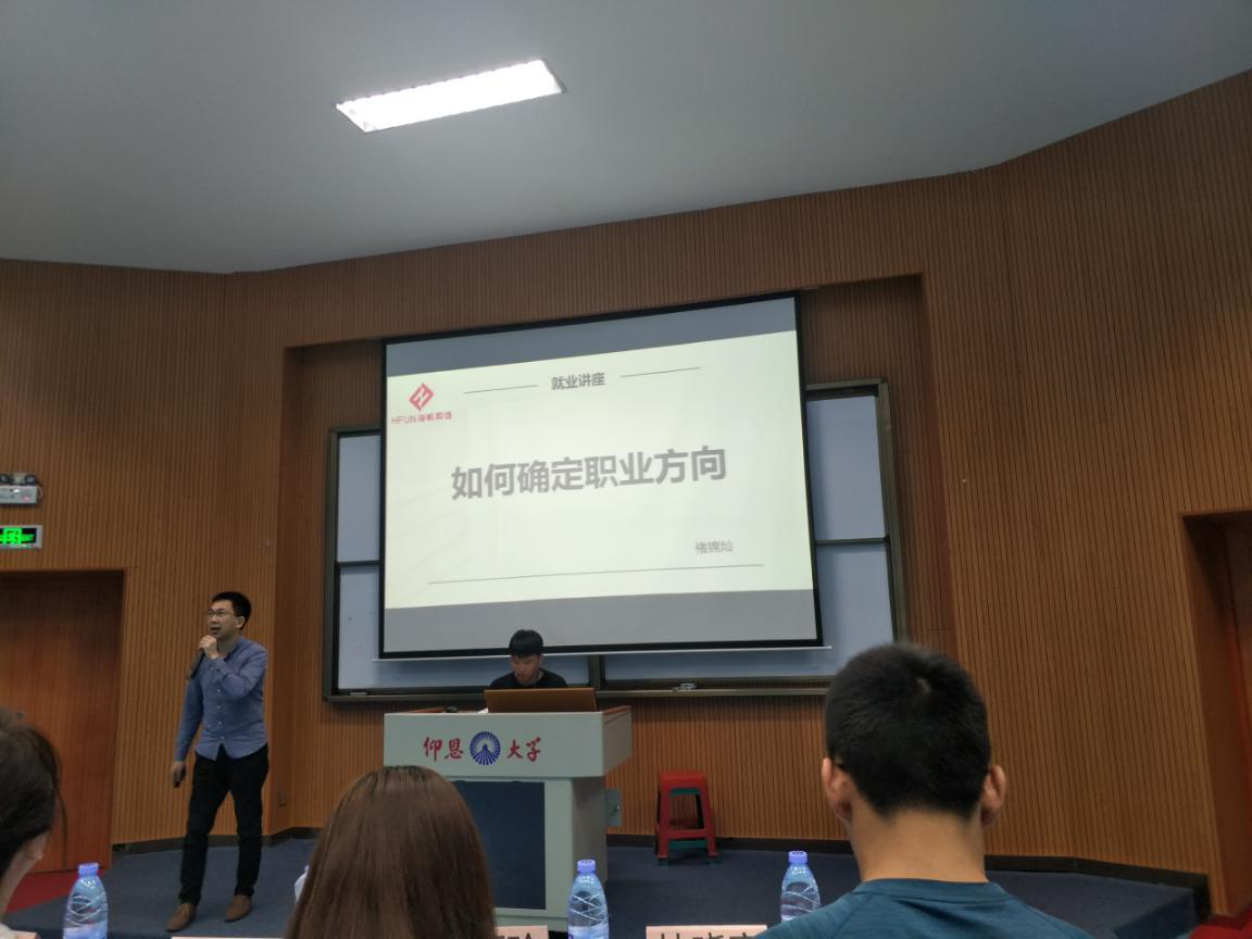 4月10日晚上7点,买球官方网站于新区和昌楼海纳讲堂举办的职业生涯讲座《让优秀的人先看到未来》圆满结束。出席本次讲座的有买球官方网站党总支书记兼副院长吴晓伟,辅导员赖桂全、何丽玲、林珊珊、陈建鑫、林晓富以及特邀主讲人厦门市海帆职场CEO褚锦灿。