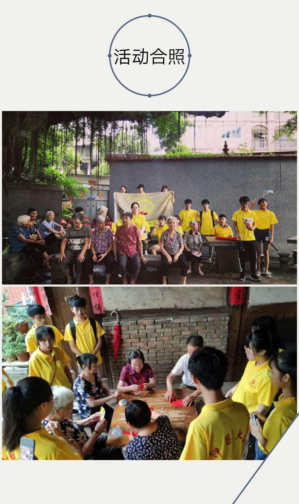 上午,队员们在陈宝珠奶奶的介绍下追溯杨厝数十年的发展故事。下午,陈宝珠奶奶的带领红耀福州队一同参观了杨氏宗祠,宗祠详细记录了杨氏家族的文化传承与辉煌历史。另外,红耀福州队还参观了具有丰富历史底蕴的龟山阁,据了解龟山阁曾三次重修,至今依旧保持相当完整,使人不禁感慨再建者技艺之精湛和文保部门保护之得力。
