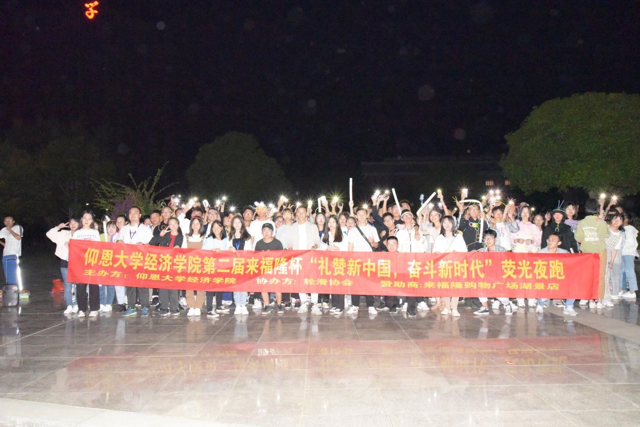 (集体合影留念) 此次“荧光夜跑”活动,经院学子以高涨的热情展现了新中国青年的风采,在今后的学习生活中将以昂扬的姿态为祖国的新时代不断奋斗。(买球官方网站新闻中心/文 买球官方网站团委宣传部/图)