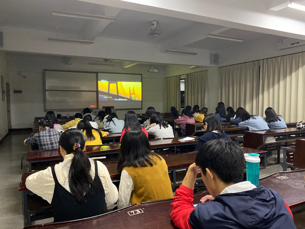 活动开始,先组织同学们观看《厉害了,我的国》这部电影,电影展示了中国在最近五年,在党的领导下,取得的各方面的成就,从各学科、各方向跻身世界前列。中国进入新时代,不是一蹴而就的,是历经几代人的积累与拼搏而造就的。从海洋到陆地,从国内到海外,中国在一步一步的发展,从具体科学研究领域的不断深入,到“一带一路”的提出与贯彻,不仅仅是综合国力,更是提高了中国在国际上的国家影响力。接着,全体起立学唱红歌,在洪亮的歌声中,增强了精神力量。唱红歌激励学生们具有积极向上、乐观进取的精神,增强学生的集体主义观念,为建设中国特色社会主义事业奉献力量、拼搏终身。