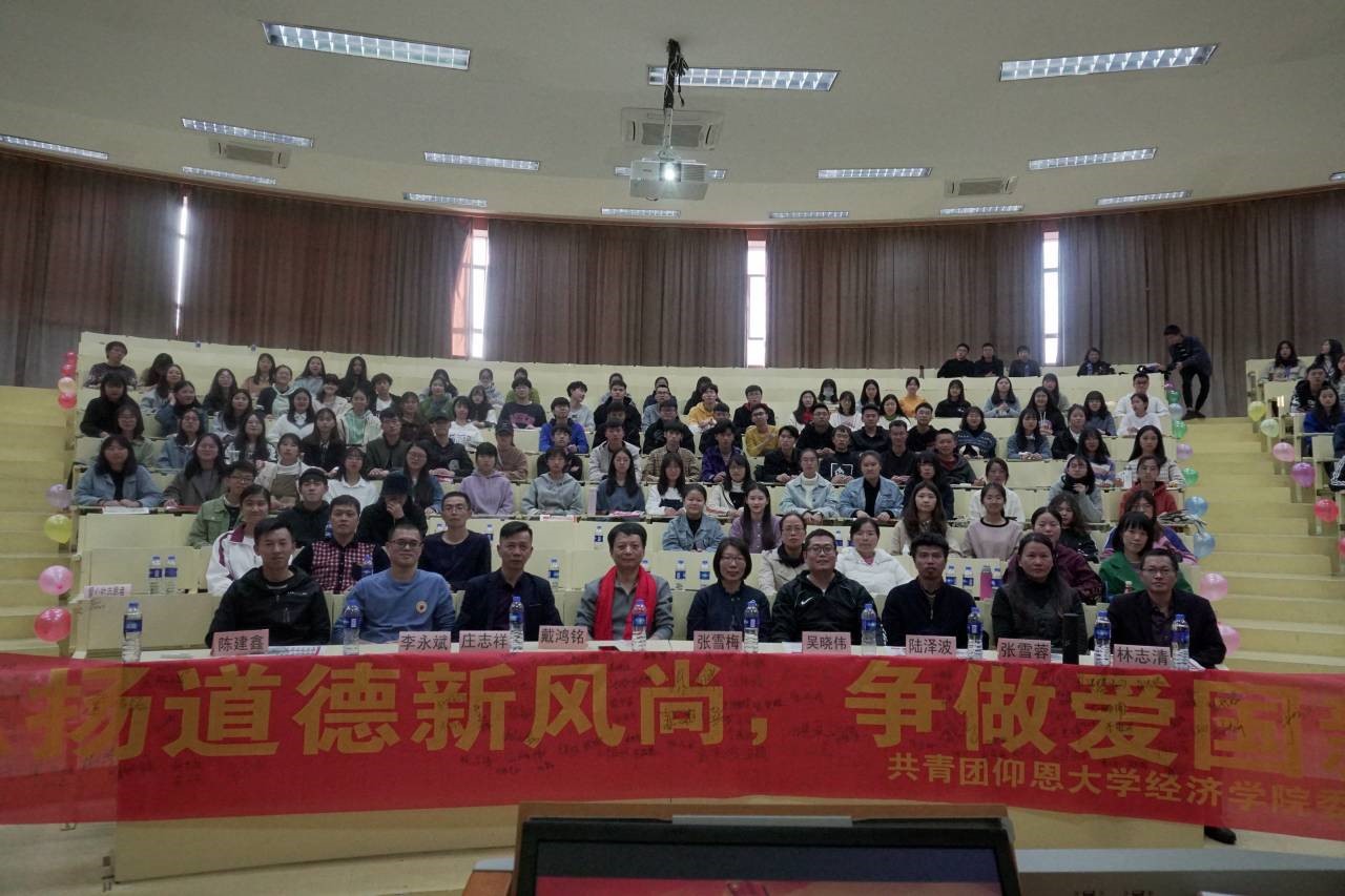 2019年12月11日下午三点在新区和昌楼惟勤讲堂,买球官方网站以“弘扬道德新风,争做爱国新青年”为主题举办道德讲堂。买球官方网站全体教师党员及学生代表参加本次活动,活动特邀惠安爱心社社长戴鸿铭先生进行道德讲堂分享。