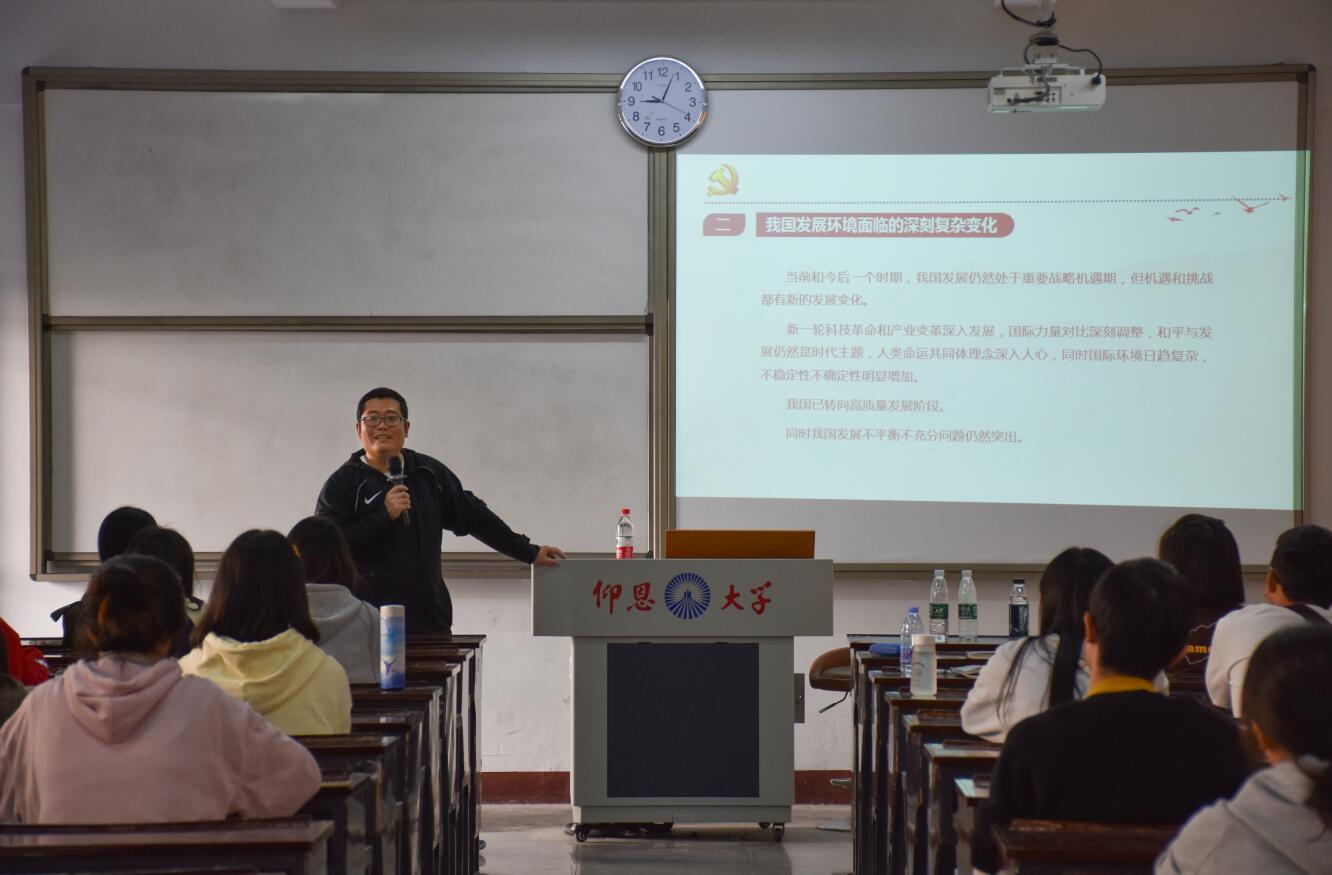2020年12月2日,为深入学习贯彻党的十九届五中全会精神,提高全体党员政治理论素养,全面深刻把握国家“十四五”规划和2035远景目标要求,买球官方网站党总支于仰恩楼A3-103开展“学习贯彻党的十九届五中全会精神”专题党课活动。党课由买球官方网站党总支书记吴晓伟主讲,买球官方网站各学生第一党支部全体党员参加本次党课活动。