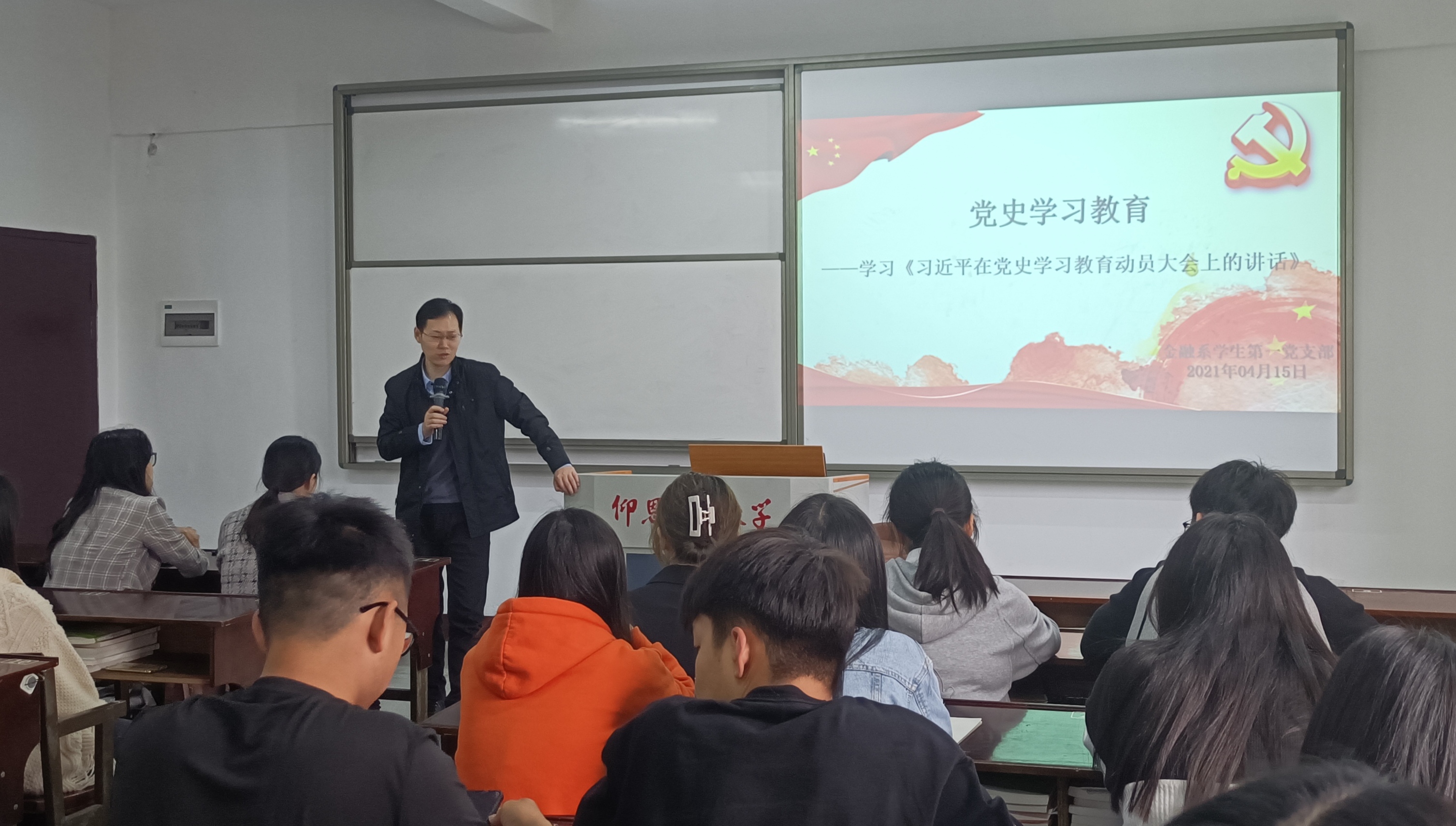 为了深入学习贯彻习近平总书记在党史学习教育动员大会上的重要讲话精神,2021年4月15日,买球官方网站金融系学生第一党支部于仰恩楼D2-401开展了关于《习近平在党史学习教育动员大会上的讲话》学习教育会。本次参会人员有支部书记孙保献、组织委员何丽玲、宣传委员林双妹,以及金融一支全体党员和预备党员。