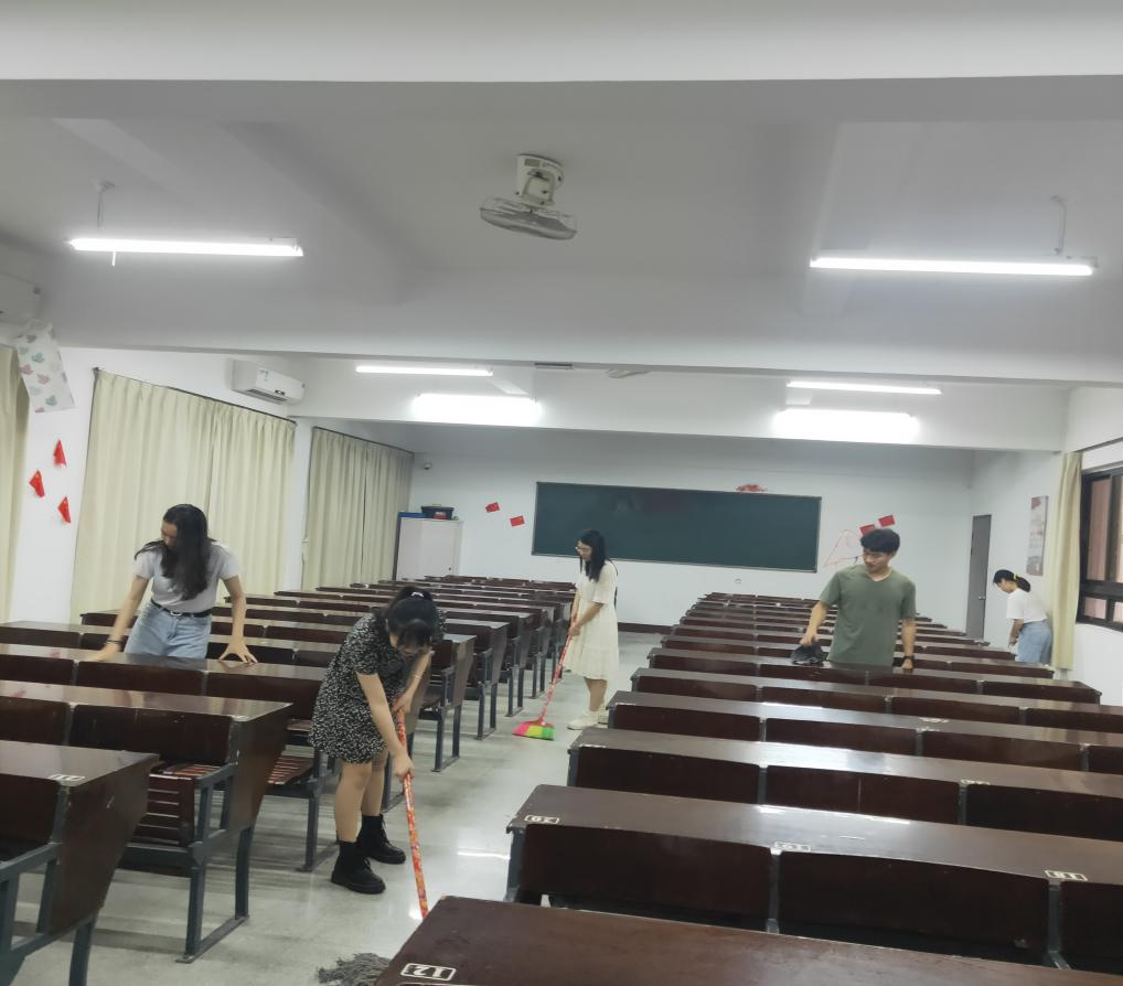 活动中,各党员同志们克服天气炎热的困难,发扬不怕脏、不怕累的奉献精神,对教室进行了全面清理,包括教室墙上的牛皮藓、过道中垃圾堆、楼道中废杂物,擦亮了教室窗户、美化了公共区域,为大四同学们营造了整洁、舒适的返校环境。