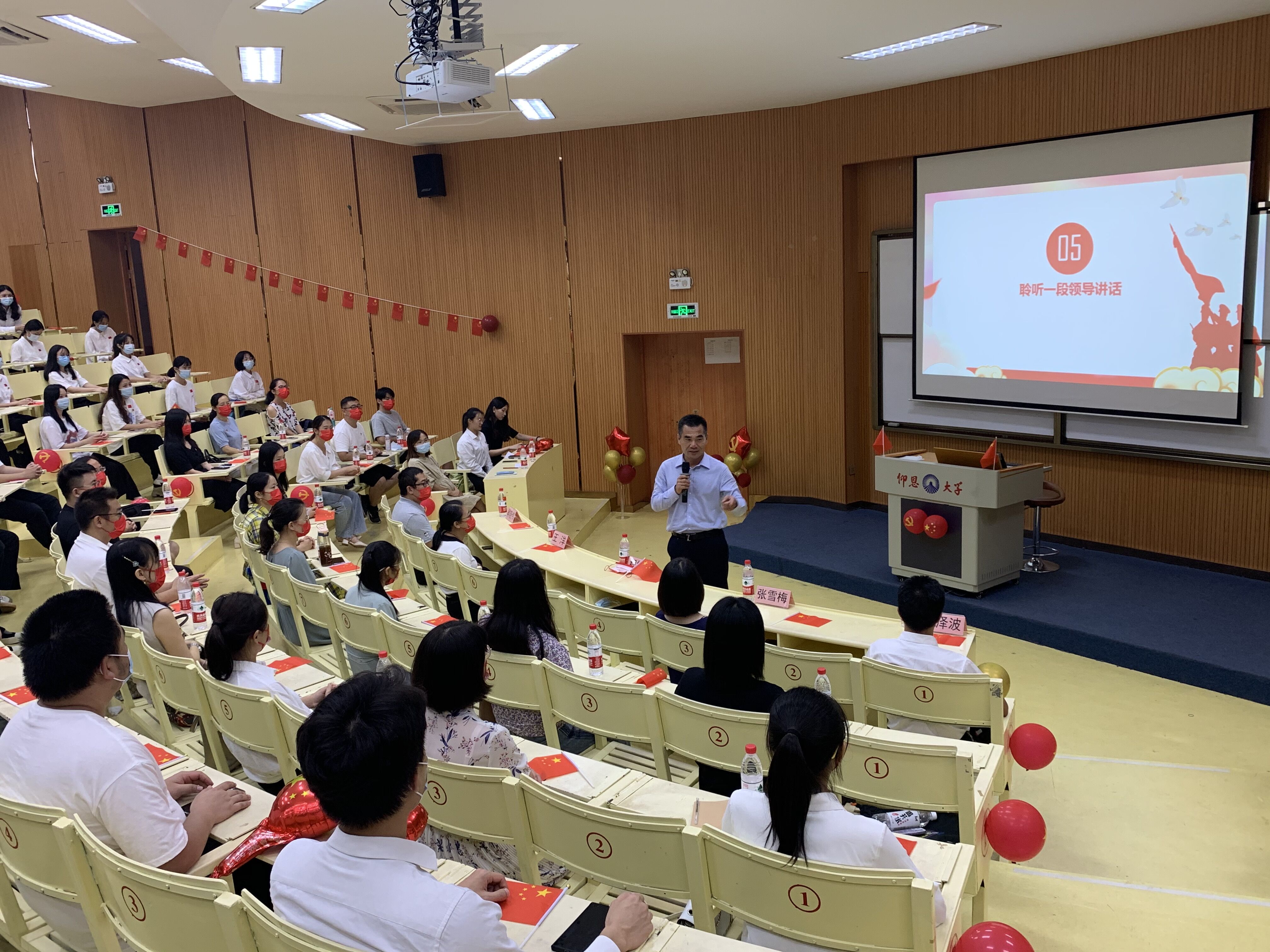 随后,支部党员陈晶同学带领与会师生共同学习一篇经典语录《习近平在纪念辛亥革命110周年大会上的讲话》,坚持共产党的领导,以史为鉴,开创未来;活动在一首红歌《我和我的祖国》合唱中达到高潮,爱国主义精神在活动现场昂扬激荡;全体与会党员在活动中重温一遍入党誓词,进一步坚定理想信念,强化党员意识。