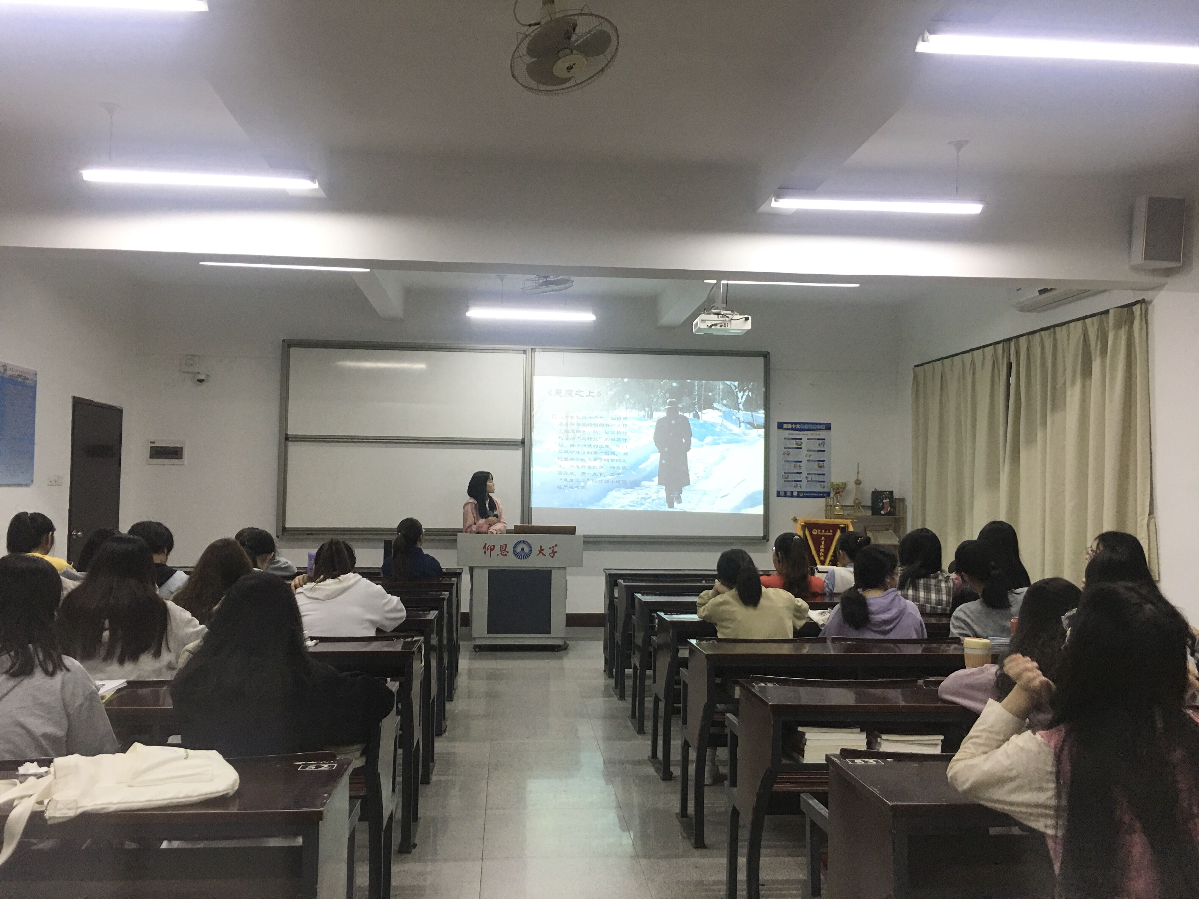 图1 同学们认真观看影片 活动伊始,同学们一同观看了影片,该影片讲述了二十世纪三十年代,四位曾在苏联接受特训的共产党特工组成任务小队,回国执行代号为“乌特拉”的秘密行动。因为叛徒的出卖,任务小队面临重重严峻考验,同志能否脱身,任务能否完成,雪一直下,行动小组立于“悬崖之上”。通过此次影片的观看,大家深刻感受到现在和平安宁的生活是无数英烈先辈们用生命换来的,岁月无疆,英雄不朽。