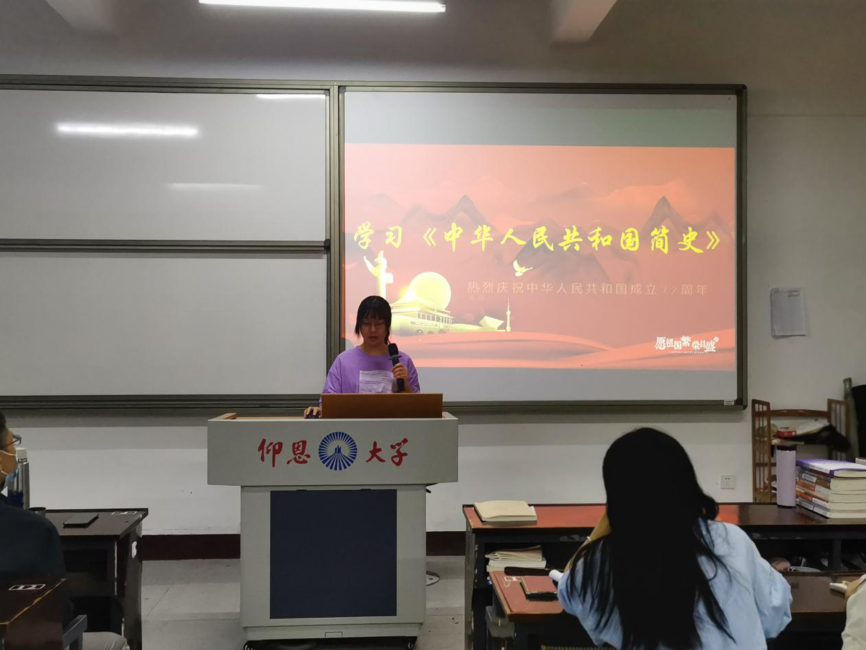 会议尾声,副书记姚姝然老师对本次学习会进行了总结发言,中华人民共和国简史是一本包涵了新中国发展几十载重要史实的中华共和国发展史书,对我们大家了解新中国的发展历程具有十分重要的意义。