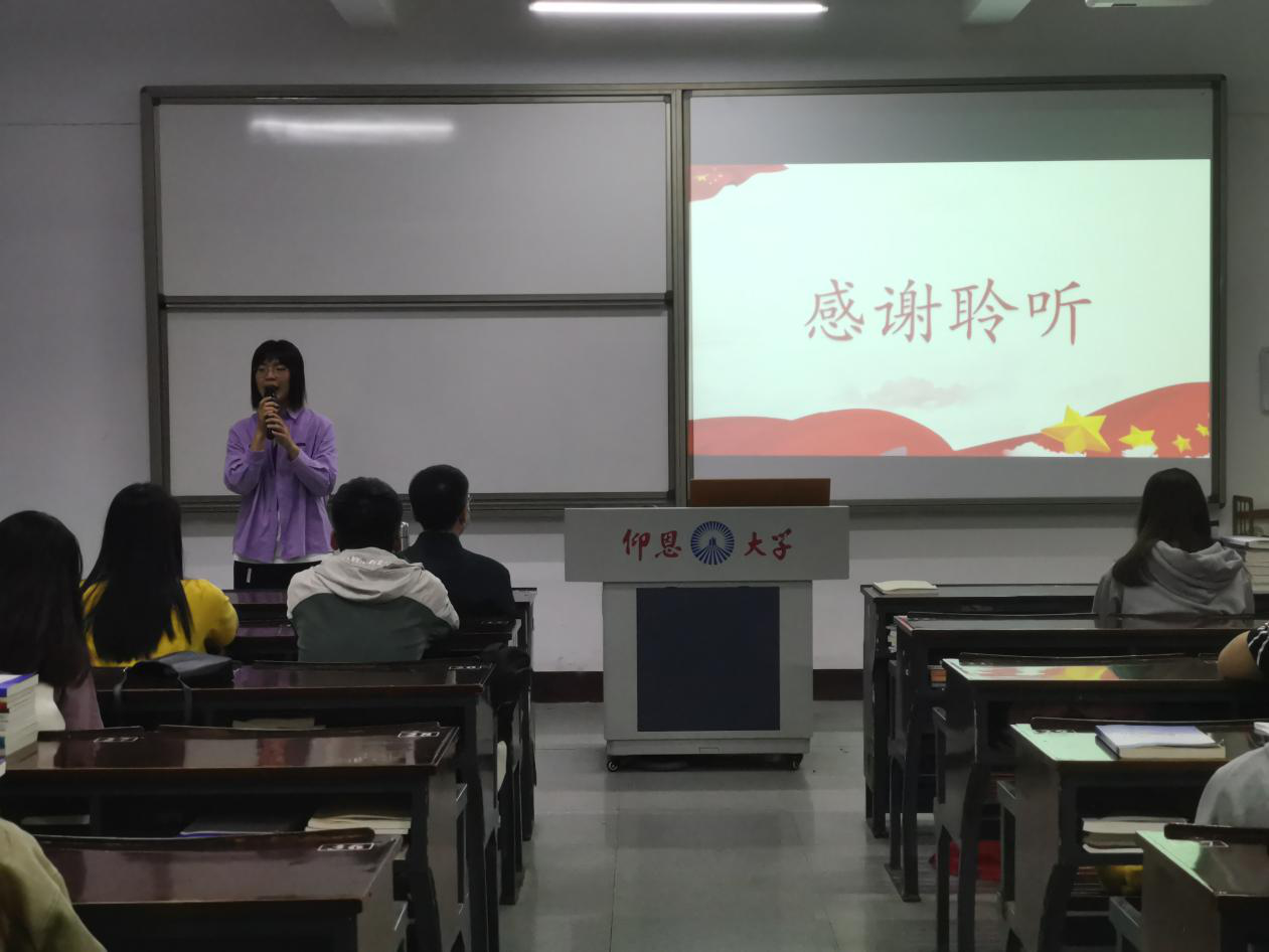 会议中,张昭霖干事围绕“重温建国伟业”、“弘扬建党精神”、“学习简史意义”三个重要方面进行学习会的宣讲。学习会上,张昭霖干事向我们深入介绍了中华人民共和国建国史,向我们系统的讲解了中国共产党的建党精神,让我们了解了学习《中华人民共和国简史》的重要意义所在。她还从新中国成立初期、社会主义建设时期、改革开放初期、全面建成小康社会、中国特色社会主义进入新时代等不同的方面向我们讲解了中华人民共和国不同时期的发展情况、中国共产党在不同时期的政策和所取得的成就,深入浅出地回答了为什么今天的中国能够发展到今日这恢宏景象。