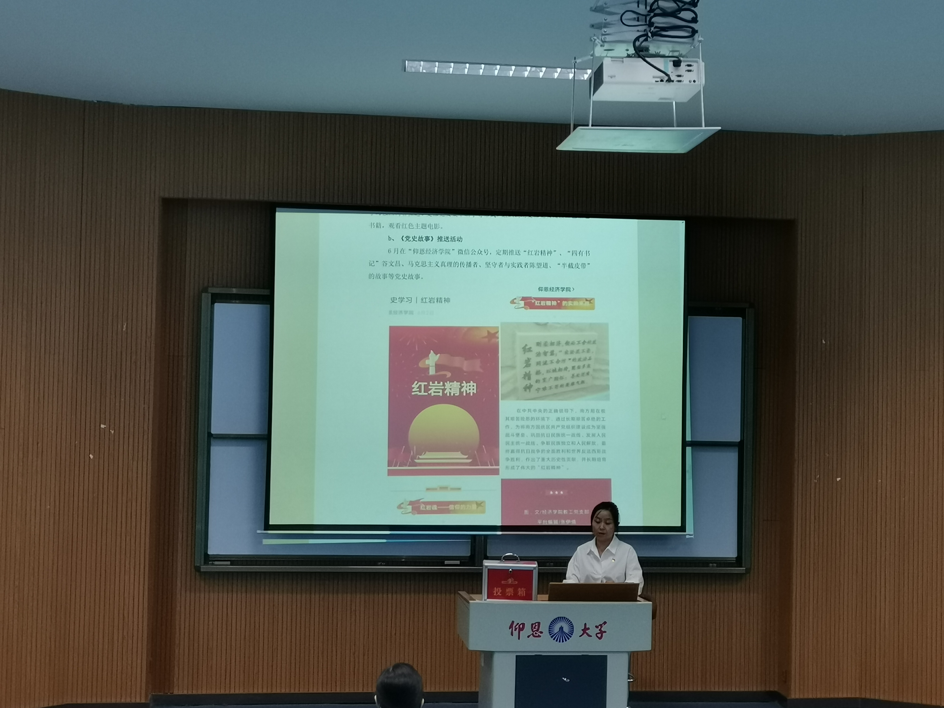 图1 教工支部杨娣同志做工作报告