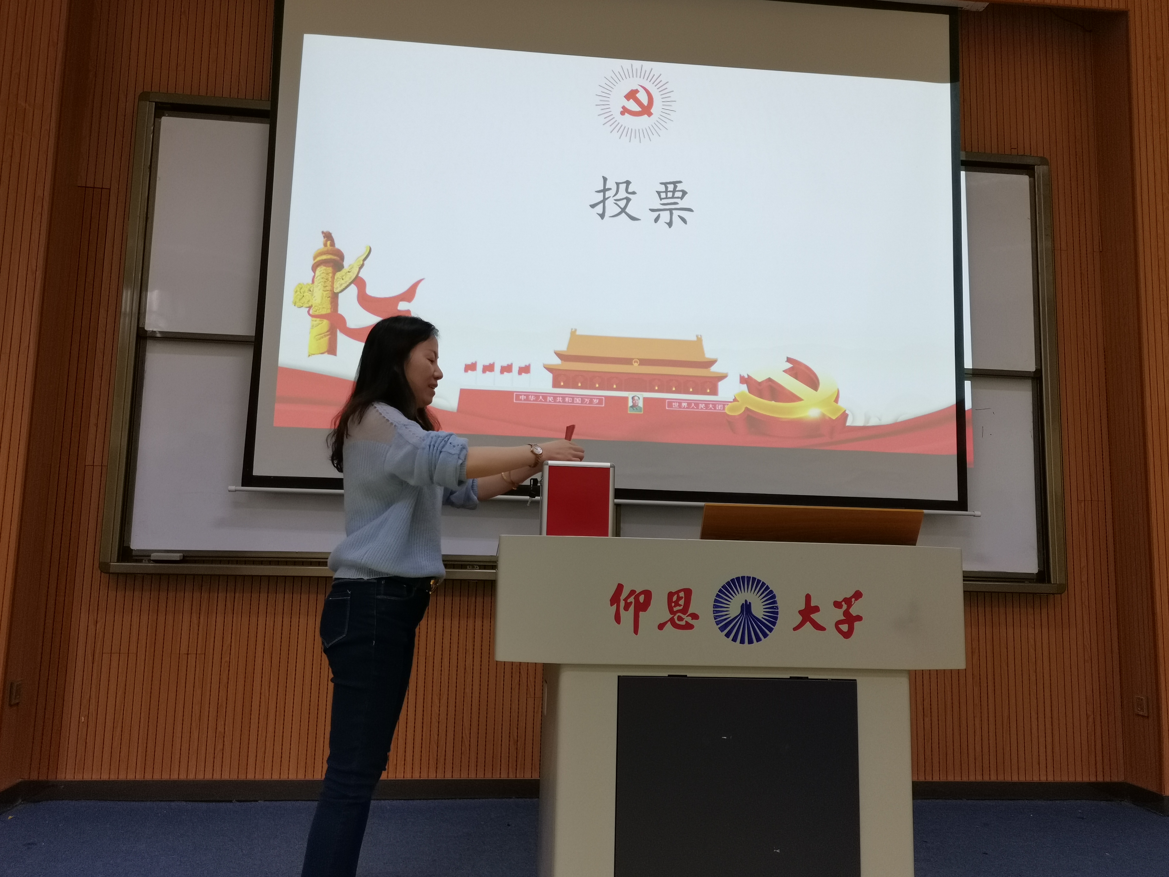 经济系学生第一党支部支委换届工作会议在思齐讲堂举行,支部应到会有选举权的正式党员共11人,实到会正式党员共11人,超过应到会人数的五分之四,符合法定人数。此次会议由姚姝然同志主持开展,并代表上届支部委员会做工作报告,以改进作风,自我反省为主题对往年的支部工作进行了回顾,总结了支部工作中所取得的成绩和存在的不足,并希望新一届支部委员会积极克服过去工作中的不足之处,继续发扬支部的优势,把支部建设地更好。大会审议通过工作报告。按照选举的有关规定,经投票选举产生经济系学生第一党支部新一届支部委员会委员。大会最后,姚姝然同志对大会进行总结,希望经济系学生第一党支部在新一届支委的带领下越来越好,永远与党中央保持密切联系。