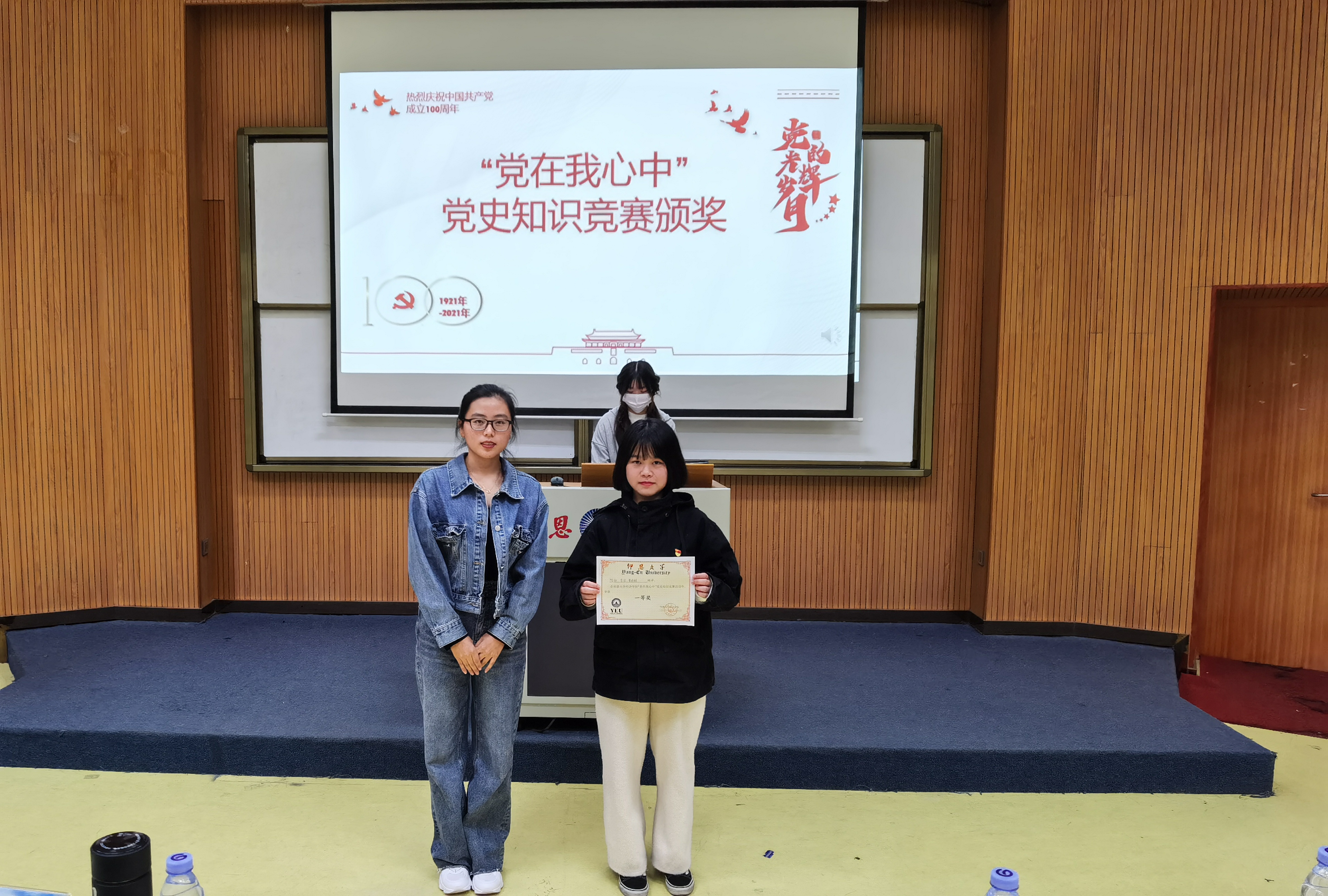 图2 颁奖环节 通过党史知识竞赛,进一步激发了全体学生学习党史的积极性,加深了学生对党史的理解和认识,有效检验党史学习教育的成果,营造了“以赛促学、以学出行”的浓厚氛围。(买球官方网站党总支/图文 审核:黄培真)