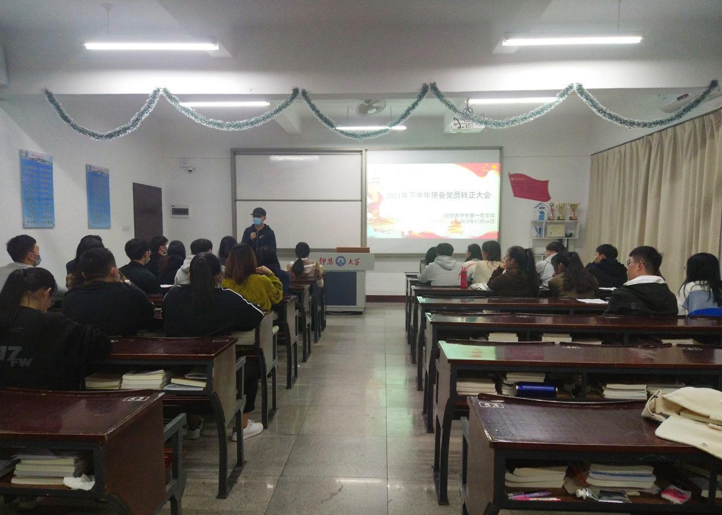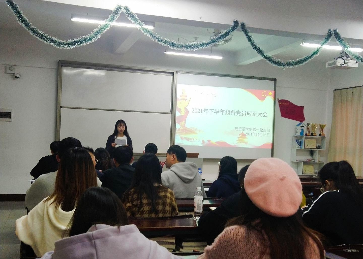 2021年12月8日下午15:55,经贸系学生第一党支部于仰恩楼B2-205召开了转正大会。参加本次会议的有经贸系学生第一党支部全体党员及预备党员。