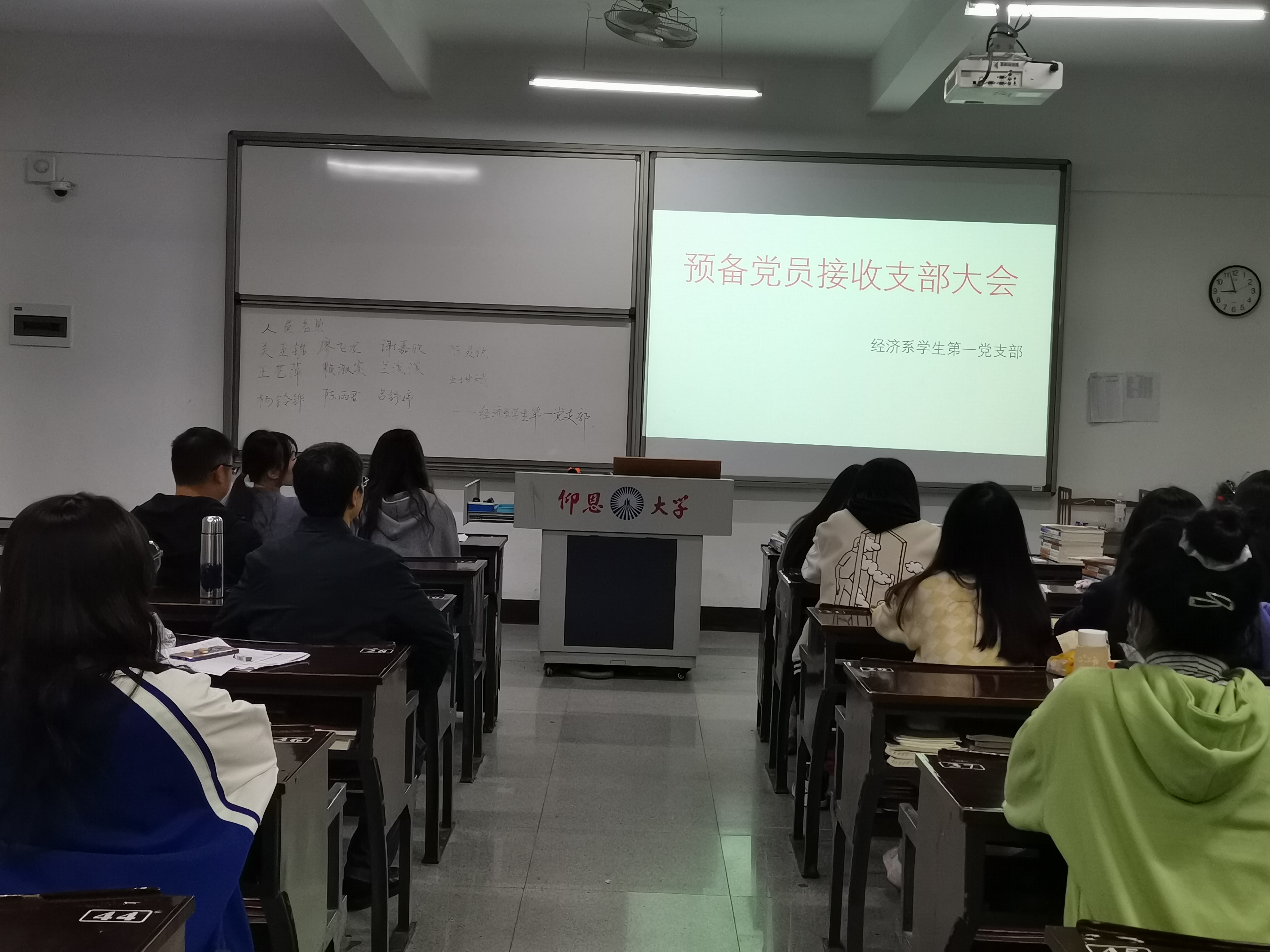 2021年12月10日晚上,经济系学生第一党支部于仰恩楼B3—205室召开支部预备党员接收大会。本次会议由经济系学生第一党支部书记赖桂全老师主持,经济系学生第一党支部副书记姚姝然老师、组织委员仲平老师、宣传委员杨越老师,支部全体党员以及支部接收对象到场参会。