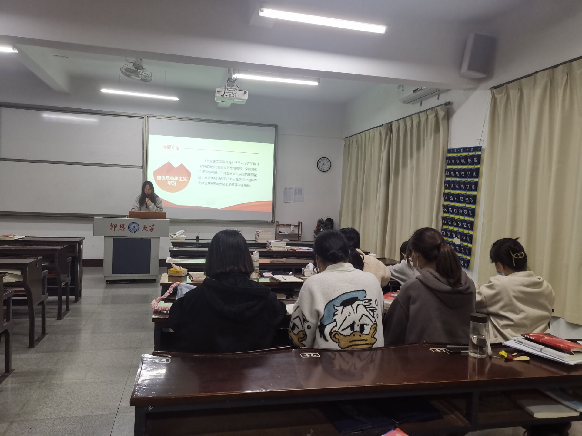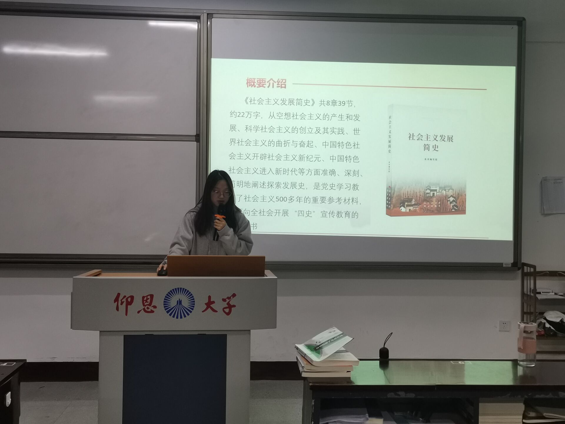 为进一步普及社会主义发展全过程及带给我们的影响,2021年12月6日晚上,买球官方网站经济学系学生第一党支部于仰恩楼B3-205开展“学习《社会主义发展简史》”的学习交流会。本次主讲人为詹羽琪干事,参会人员为支部书记赖桂全老师、支部副书记姚姝然老师、组织委员仲平老师、宣传委员杨越老师以及支部全体学生党员。