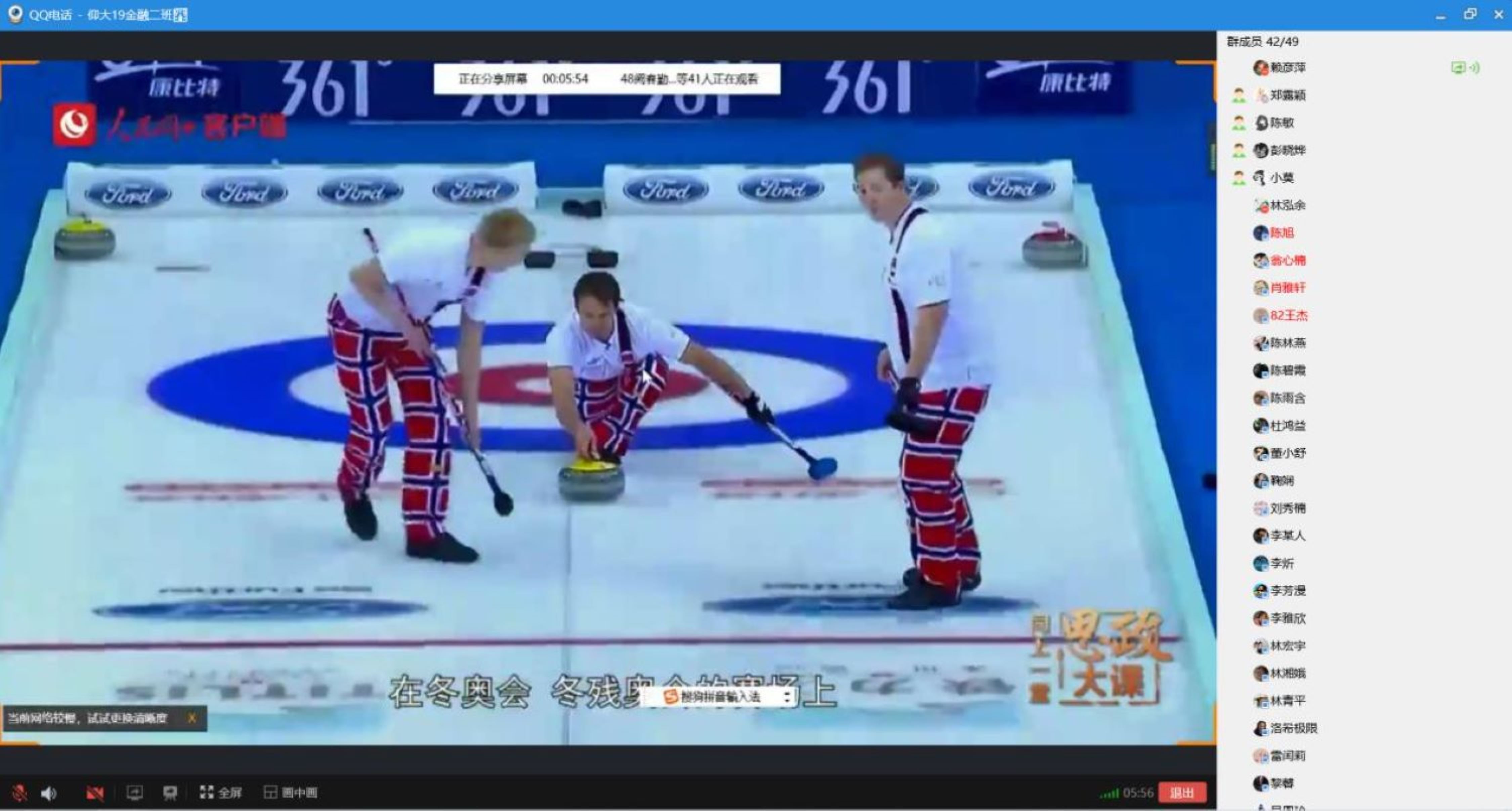 图 班级全体成员收看情况 通过此次公开课的观看、学习,让同学们深刻的感受到了中国的奥林匹克精神。通过奥运健儿们的阐述,同学们能够深刻的感受到,他们用拼搏诠释使命的坚定不移。从立春之日的“一朵雪花”,到临别之时的“折柳寄情”,中国向世界奉献了一届简约、安全、精彩的奥运盛会。从东奥、冬残奥的申办、筹办、举办,所有工作人员、参赛选手用心诠释了共创胸怀大局、自信开放、迎难而上、追求卓越、共创未来的精神。几代人的坚持、几代人的梦想,见证了中国人民的坚持不懈、奋勇拼搏,见证了中华民族的崛起。