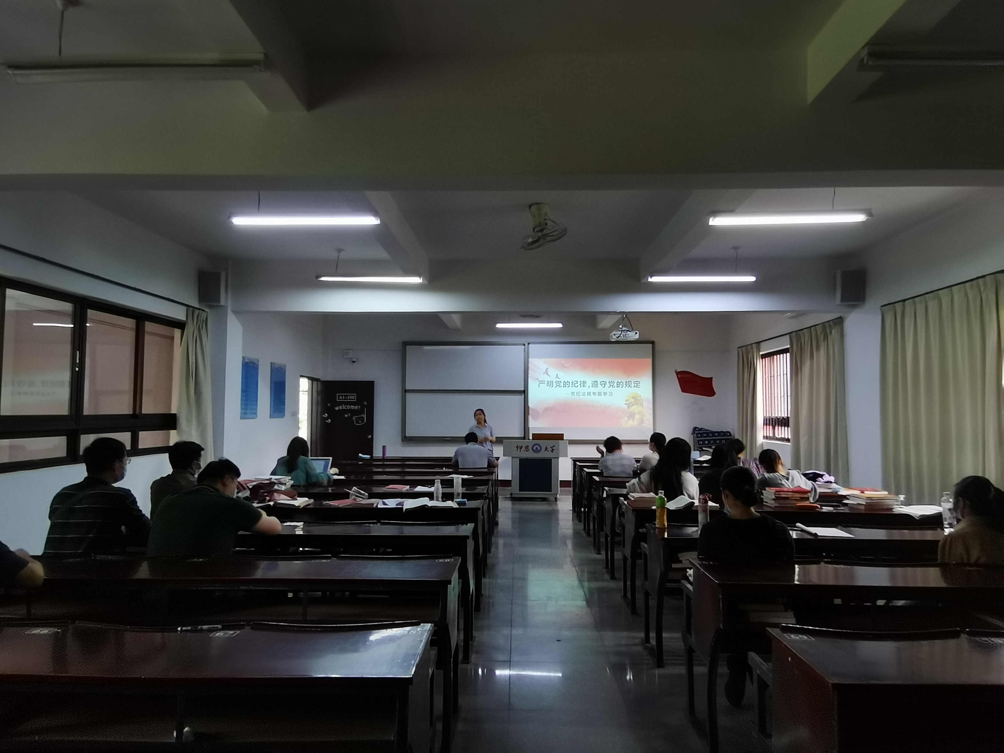 5月25日下午,买球官方网站教工支部组织全体党员在仰恩楼A1-105开展党纪党规专题学习,加强教师党员政治纪律教育。此次学习会由支部书记杨娣同志主持。