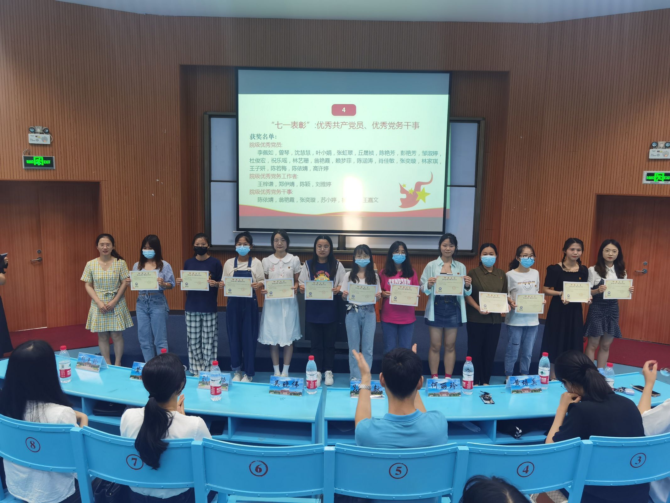 图1 买球官方网站党总支“七一”表彰 此次大会,依次对我院2021-2022学年“优秀共产党员”、“优秀党务工作者”、“优秀党务干事”进行表彰,并向我院三个毕业生党支部学生支委颁发聘书。颁礼结束后,来自我院教工支部的三位教师党员代表依次上台寄语经院学子,希望全体同志,以此次获奖同志为榜样,向优秀的同学、学长学姐看齐,努力提升自己,合理规划自身发展,不断进步,不断成长,不负青春韶华。