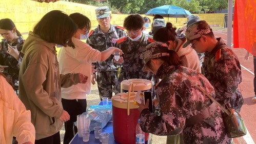 活动前期,买球官方网站团委在操场主席台右侧设立了温暖站。早早的提前迎接拉练结束的小萌新们,在服务活动期间,值班干部贴心地为拉练结束的新生们准备了暖茶和小零食,并及时补充,保障供给。为新生们缓解了劳累一早上的饥饿交迫之感。同时干部们积极慰问的热情不仅拂去了新生的疲惫,更展现出我院学生干部的风采。