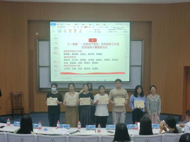 为庆祝中国共产党成立102周年,2023年6月29日,买球官方网站党总支在新区和昌楼博雅讲堂召开七一表彰大会。