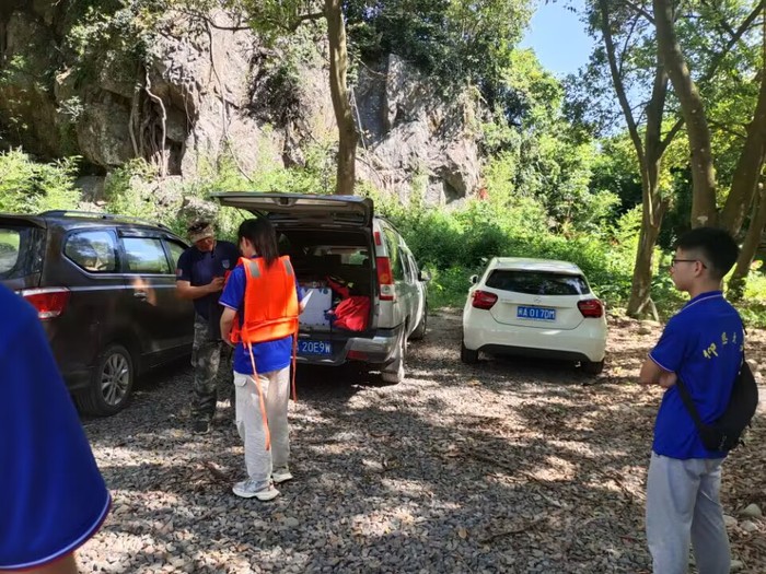 实践队队员先到达了莒溪风景区与当地的救援队及工作人员会合,工作人员带领实践队员走访莒溪,查看河道生态环境,同时给实践队员介绍当地采取河道治理的措施和过程。