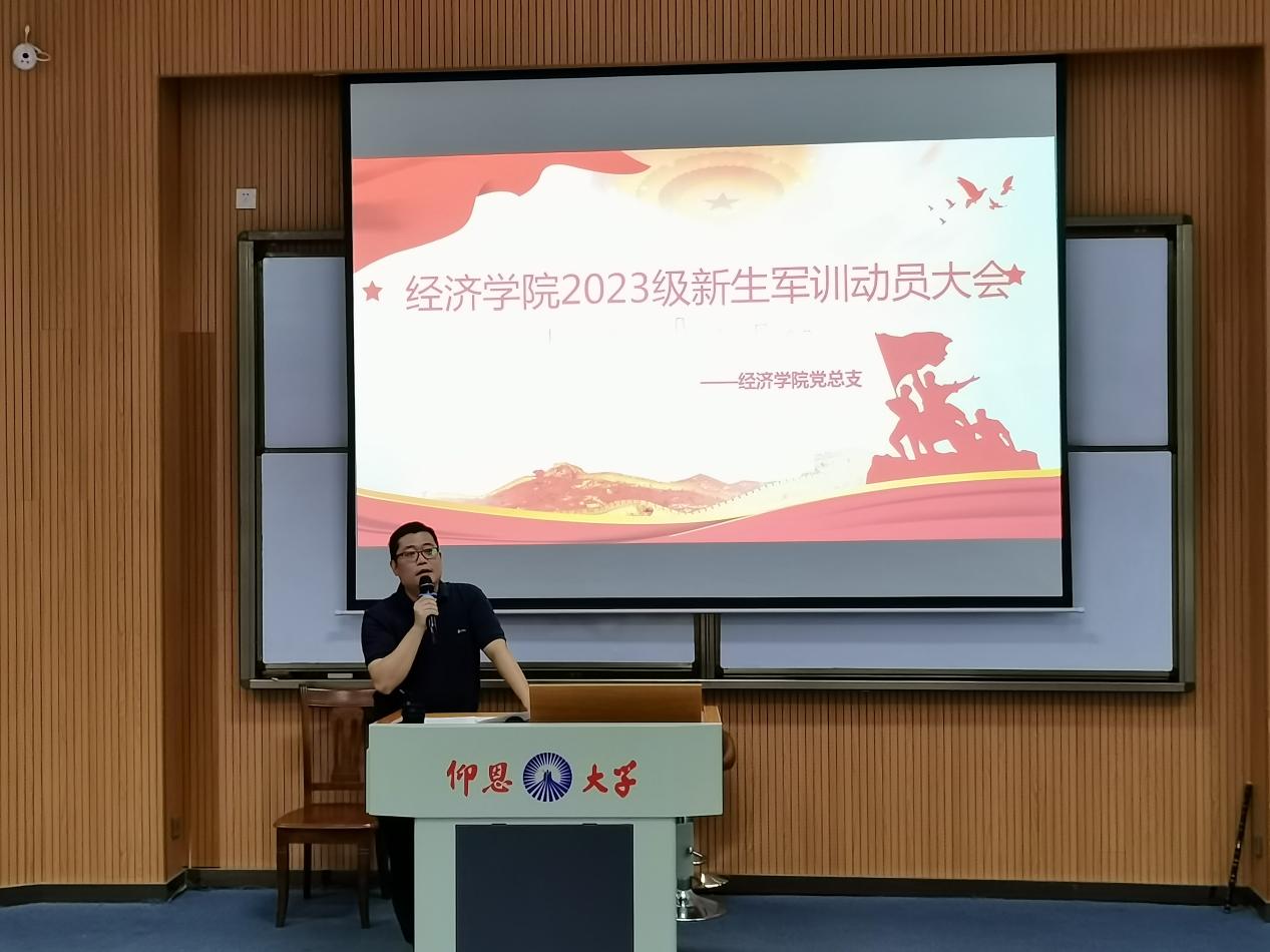图 买球官方网站党总支书记吴晓伟作军训动员发言