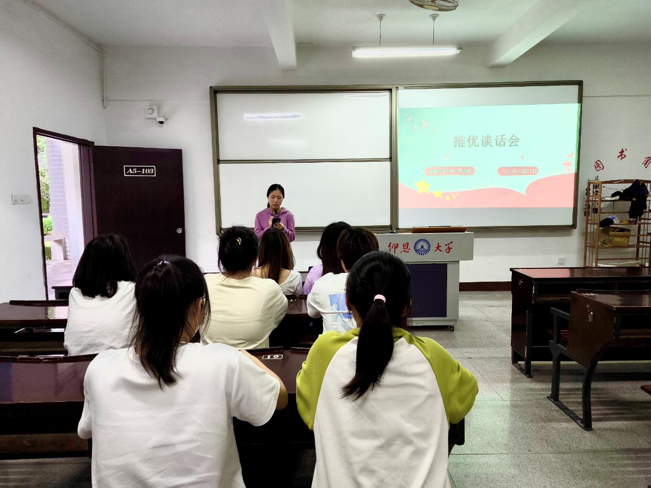 首先,支部书记何丽玲同志对本次谈话会的议程作简要介绍,随后,19名推优对象依次上台进行汇报其自身个人情况、入党决心并表明态度,对支部支委所提出的问题进行答辩,由支委考察其入党动机。最后,支委同志就推优对象谈话内容进行讨论。参与谈话的同学们纷纷表示在今后的学习和工作中,会一直努力提升自己,以党员的标准严格要求自己,积极向党组织靠拢。