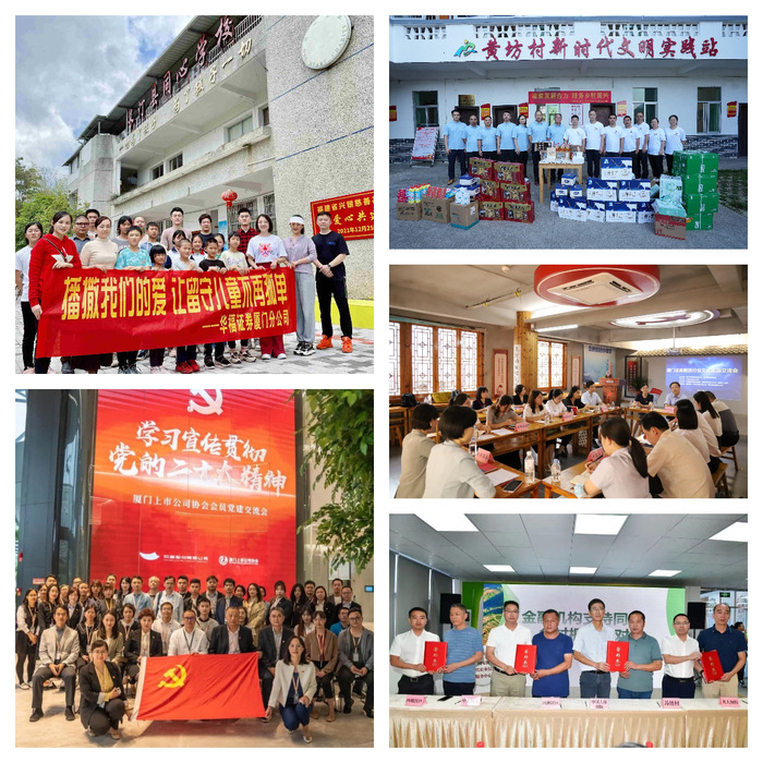 2.观摩学习取真经,见贤思齐强党建。为进一步提升党建工作水平,创新党建思路,厦门分公司2022年组织参加厦门上市公司协会举办的企业党建交流,2023年组织参加厦门证券基金业协会、厦门鹭岛投教联盟主办的厦门证券期货行业文化主题交流活动,与各单位从党建引领、培训宣导、廉洁从业、特色文化、投资者教育与保护、履行社会责任、服务实体经济等方面展开详细交流,汲取先进经验。