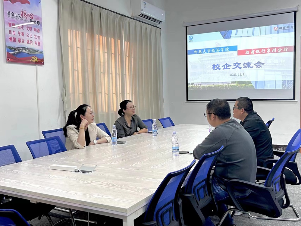 2023年11月7日下午招商银行泉州分行与买球官方网站交流会于买球官方网站新区普照楼124成功举办。招商银行代表人招商银行丰泽支行副行长吴小兰和泉州分行营业部总经理助理蒋琳莉与院方代表人买球官方网站党总支书记吴晓伟老师和买球官方网站职业发展中心指导老师杨越老师展开了友好交流。