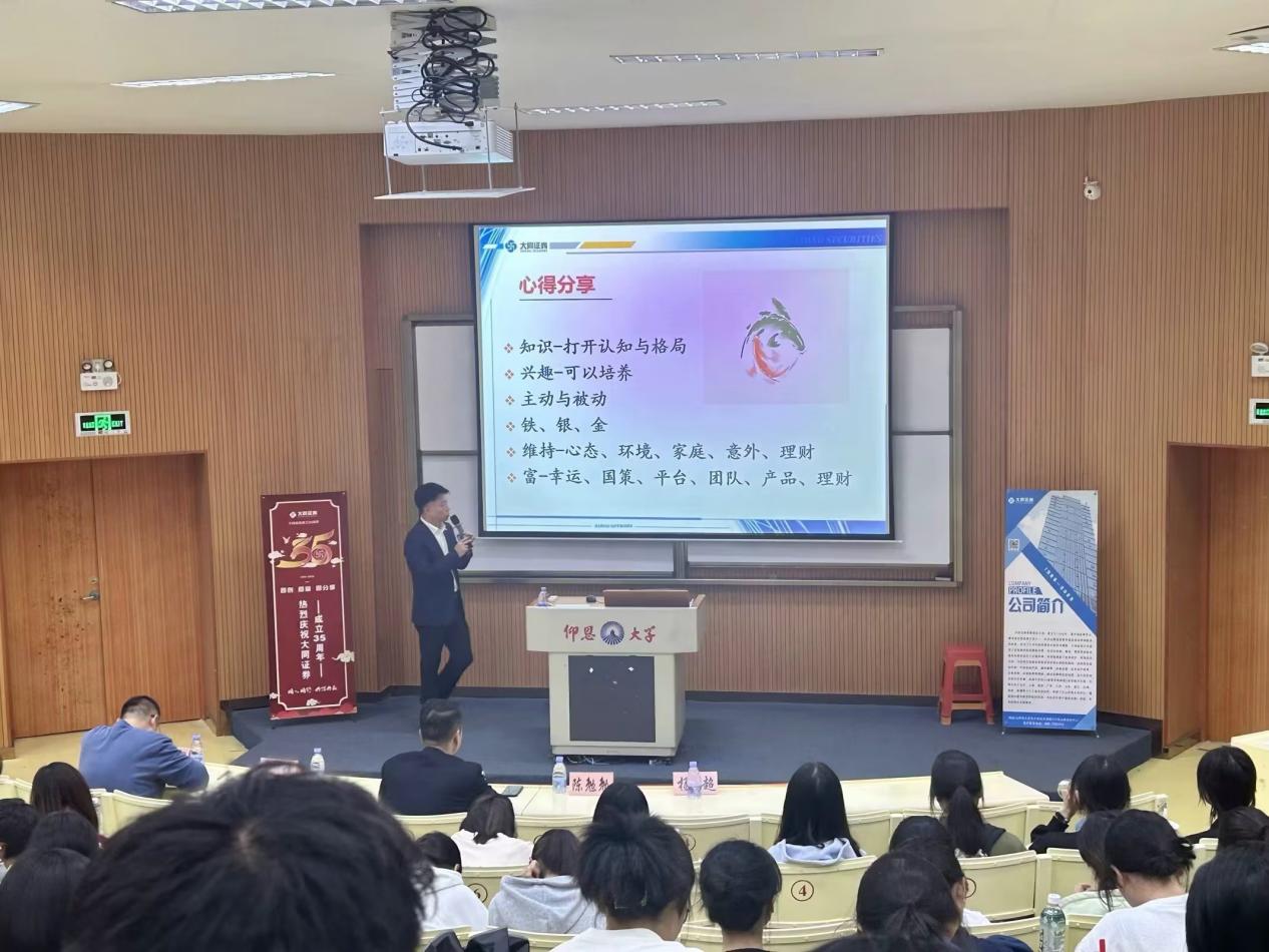 2023年11月23日下午,大同证券有限责任公司于买球官方网站第三教学区和昌楼惟勤讲堂开展了大同证券就业主题宣讲活动,大同证券泉州营业部首席投顾李纬、大同证券合规专员杨超、大同证券综合办公室陈勉勉、大同证券负责人崔晓铭、买球官方网站职业发展中心指导老师杨越一同到场出席了本次宣讲活动,买球官方网站2023级、2022级和2021级金融系学生到场聆听。